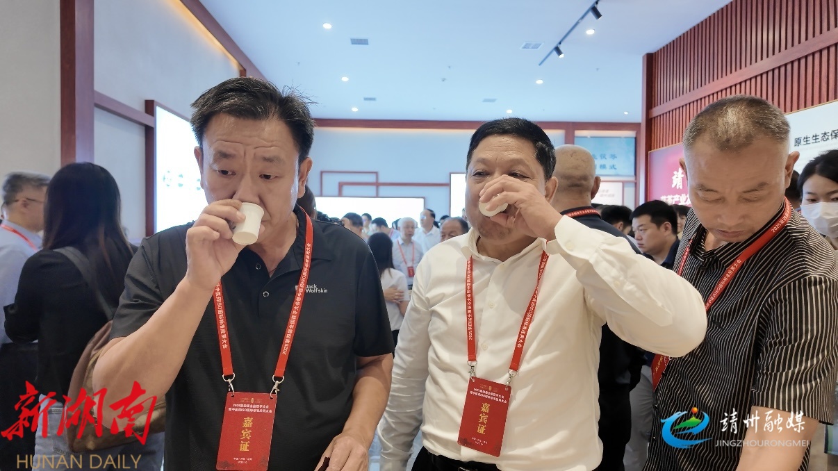 领导嘉宾、专家学者、科研院校及企业、协会代表等现场品尝茯苓咖啡(孙文月 摄)