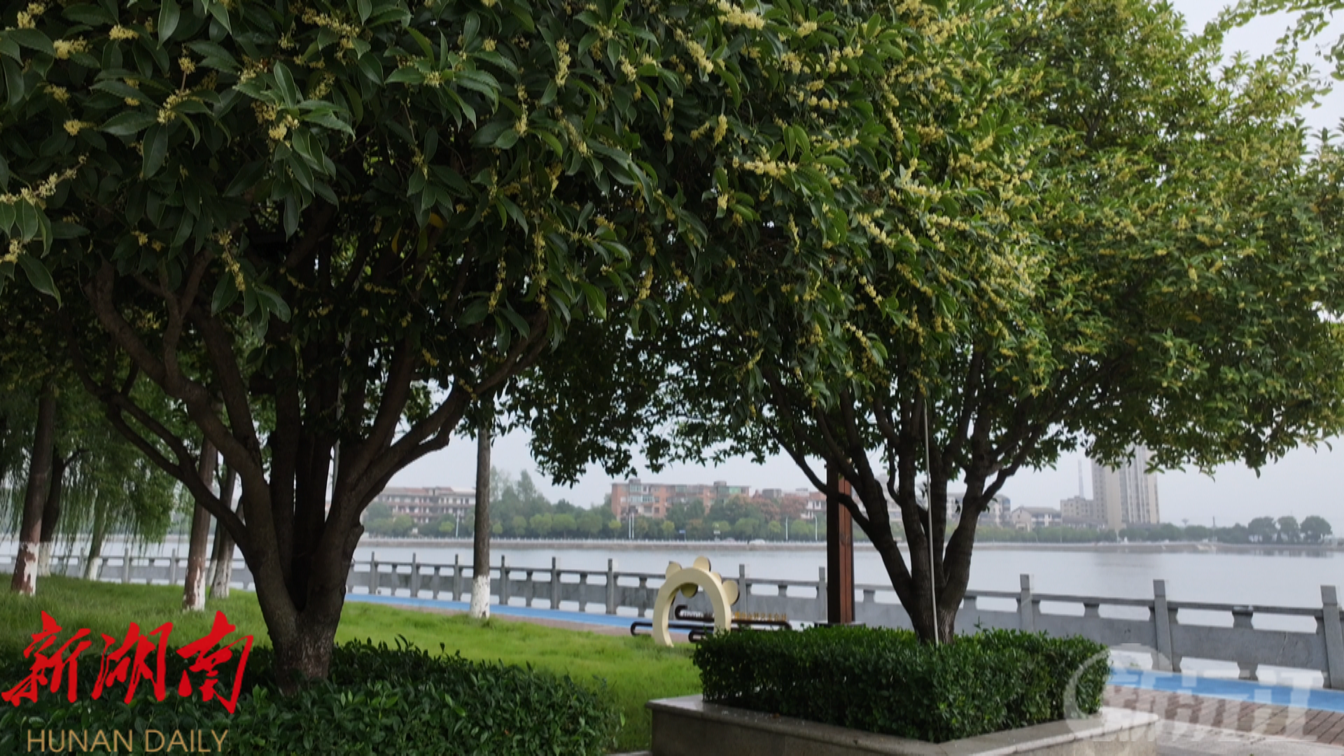 在琼湖公园内,桂花树群早已褪去夏的沉寂,微风掠过湖面时,桂花的香气与湖水的清冽交织,酿成独属于沅江的秋日气息。穿行林间,让人的脚步不自觉随桂香放缓,阳光透过枝叶洒在地上,落满细碎的花影与光斑,整个公园都浸在温柔的香气里。