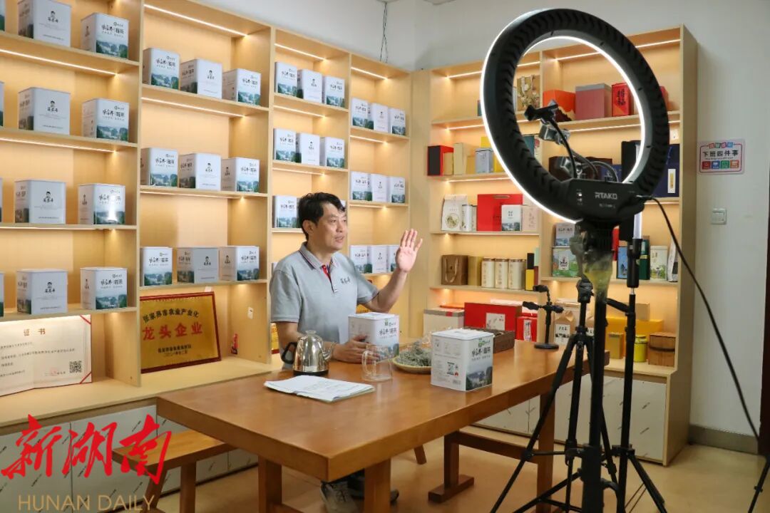 随着互联网经济的快速发展,朱芳翼敏锐把握电商机遇,积极在抖音、京东、天猫、淘宝、微信等各大平台开设线上店铺。闲暇之余,他还会亲自上阵直播,从莓茶生长的自然生态环境、采摘标准,到独特的制作工艺、冲泡方法以及保健功效,无一不细致讲解。“莓茶不需要洗茶,可以直接用90度以上的开水冲泡,这样能最大程度保留营养成分。”朱芳翼一边演示,一边耐心解答网友提问。