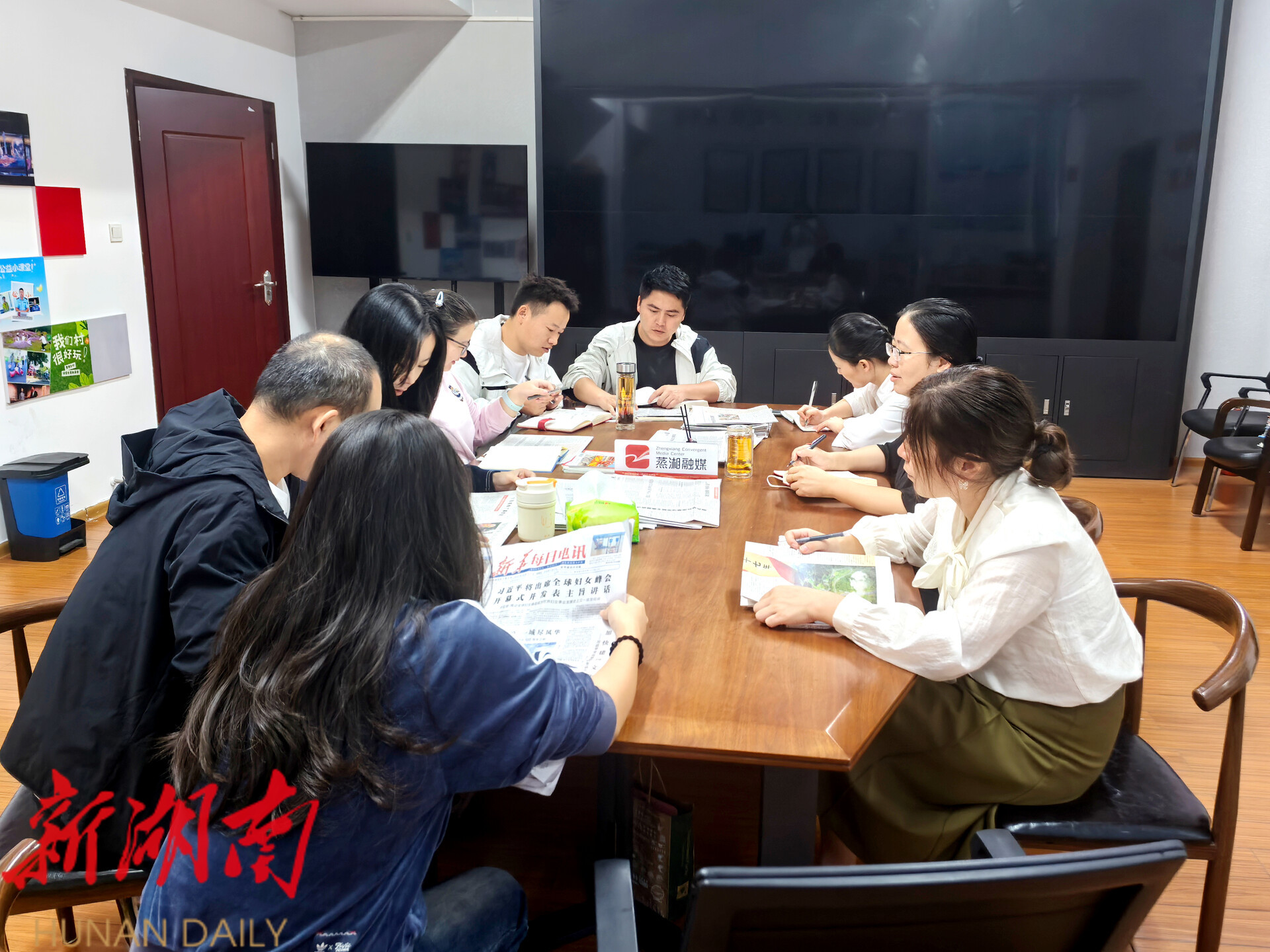 蒸湘融媒10月17日讯(记者 赵娓娓)“今天跟大家分享的是《人民日报》10月7日头版《为强国建设 民族复兴伟业凝聚强大精神力量——宣传思想文化工作高质量发展展现新气象、新作为》。”“科技正在为传统林果业注入新动力。在温宿国家农业科技园区,无人机精准喷洒生物农药,地下传感设备实时回传土壤墒情、温度等信息。走进果园,增值之旅才刚刚开始。”……朗朗读报声传来,这正是蒸湘区融媒体中心党支部每日早晨进行集中读报学习的生动场景。