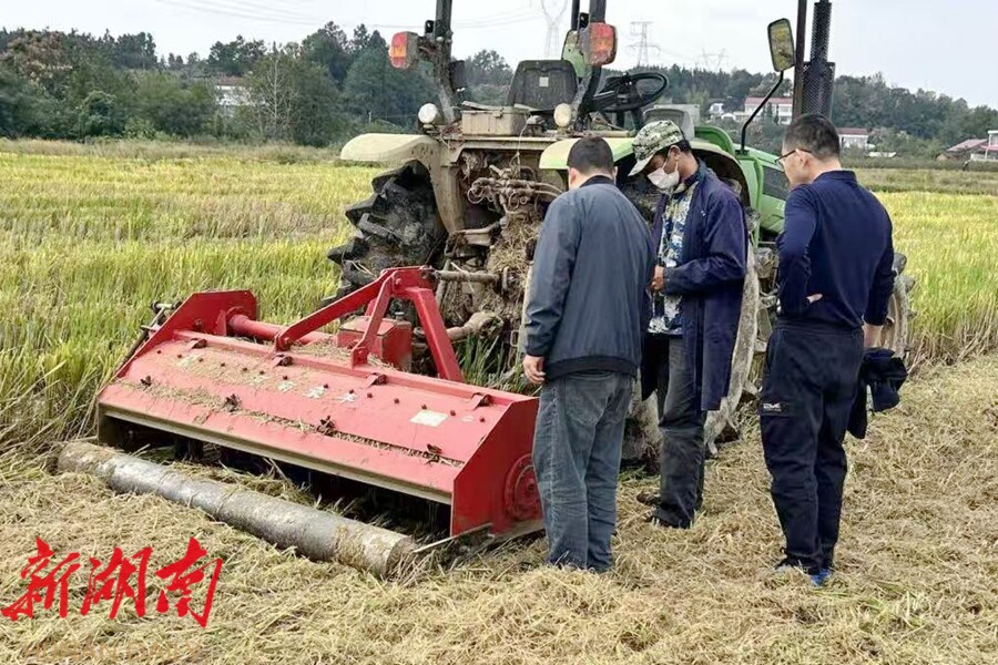 工作人员指导农户开展秸秆粉碎还田