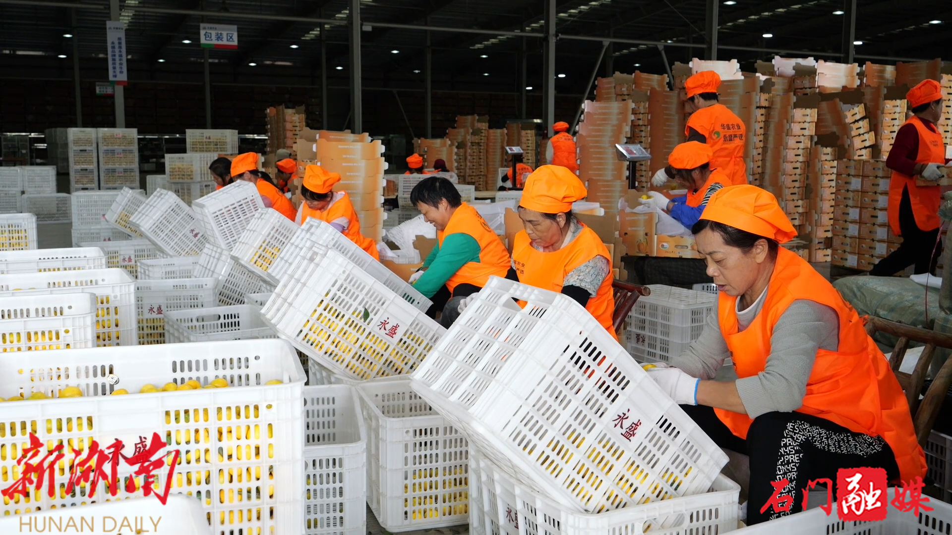 在石门永盛农业发展有限公司,工人们正在紧张忙碌。这家公司主要经营柑橘、脐橙的收购、采后处理、加工、仓储及销售,每年都需要大量固定用工和季节性用工,带动就业200多人,成为联农带农、稳岗增收的重要枢纽。