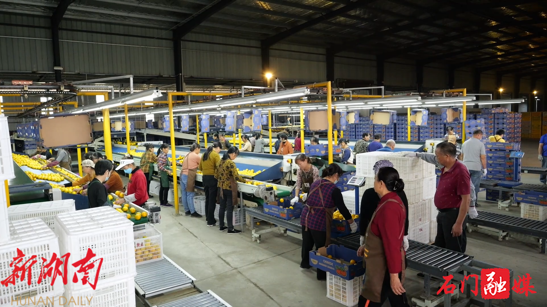 金秋时节,柑橘飘香,一颗颗饱满圆润、色泽鲜亮的柑橘从石门县各个橘园运到工厂,经过流水生产线进行清洗、分选、包装,最后装车后通过冷链运输走出大山、走向世界。
