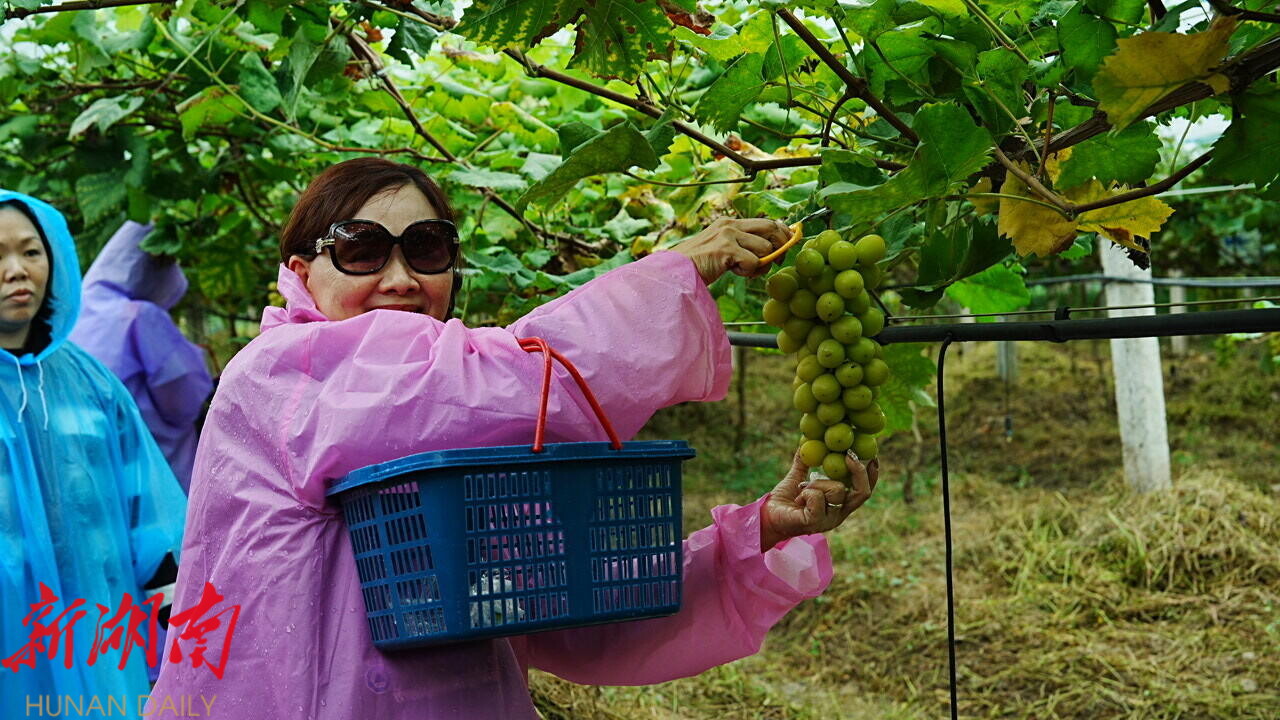 在硕果累累的葡萄园里,新加坡游客们手持果篮,兴致勃勃地体验采摘乐趣。一串串晶莹剔透的阳光玫瑰葡萄在雨水下闪耀着翡翠般的光泽,游客们一边品尝着甘甜多汁的葡萄,一边用手机记录下这难忘的田园时光。“桑植的山水和田园风光让人难忘,今天我们每人都买了不少葡萄,有机会一定要带家人再来。”游客欣喜地分享道。