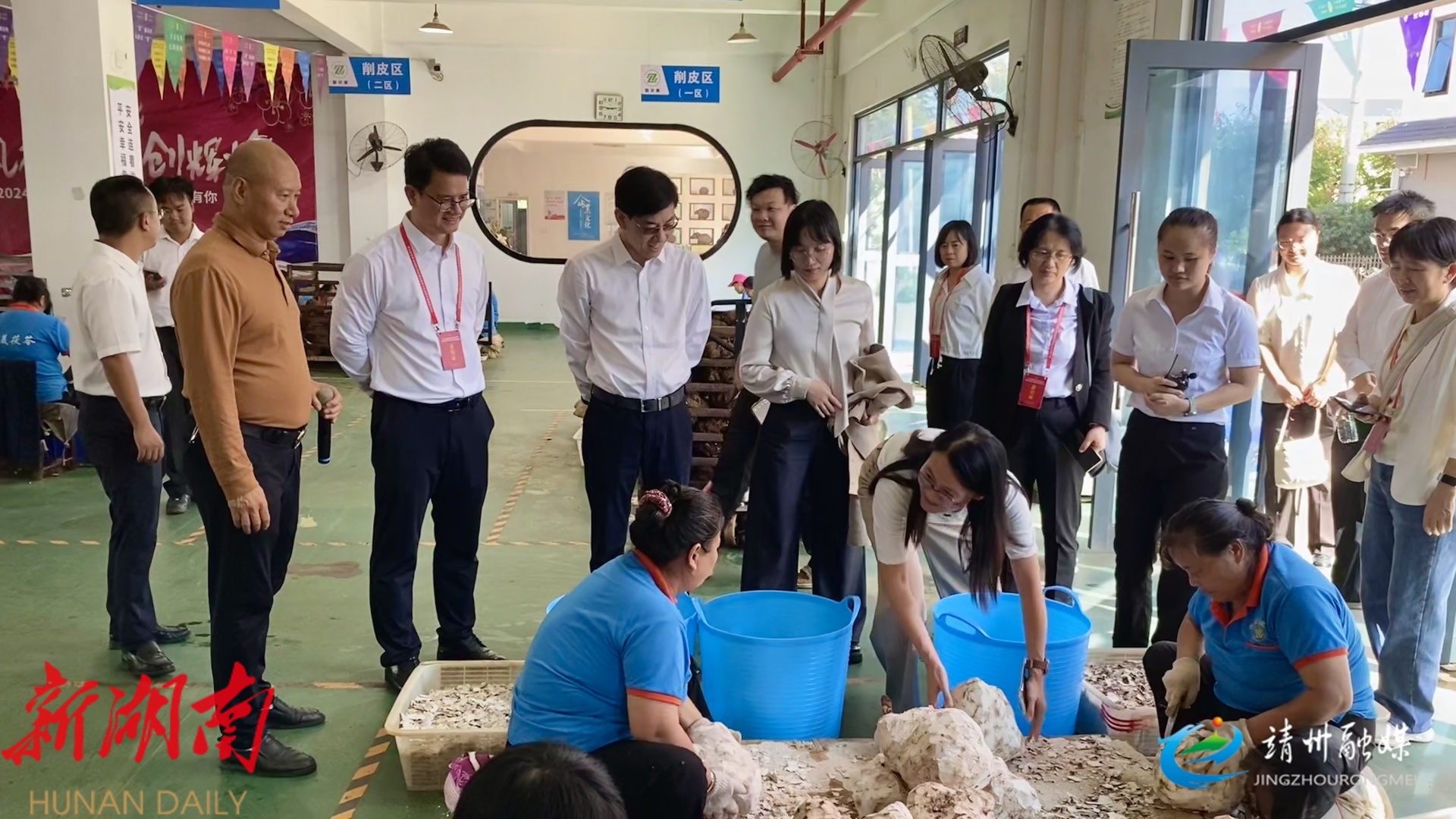 “院士专家怀化行走进靖州”调研考察团队在茯苓加工贸易中心参观(张秦 摄)