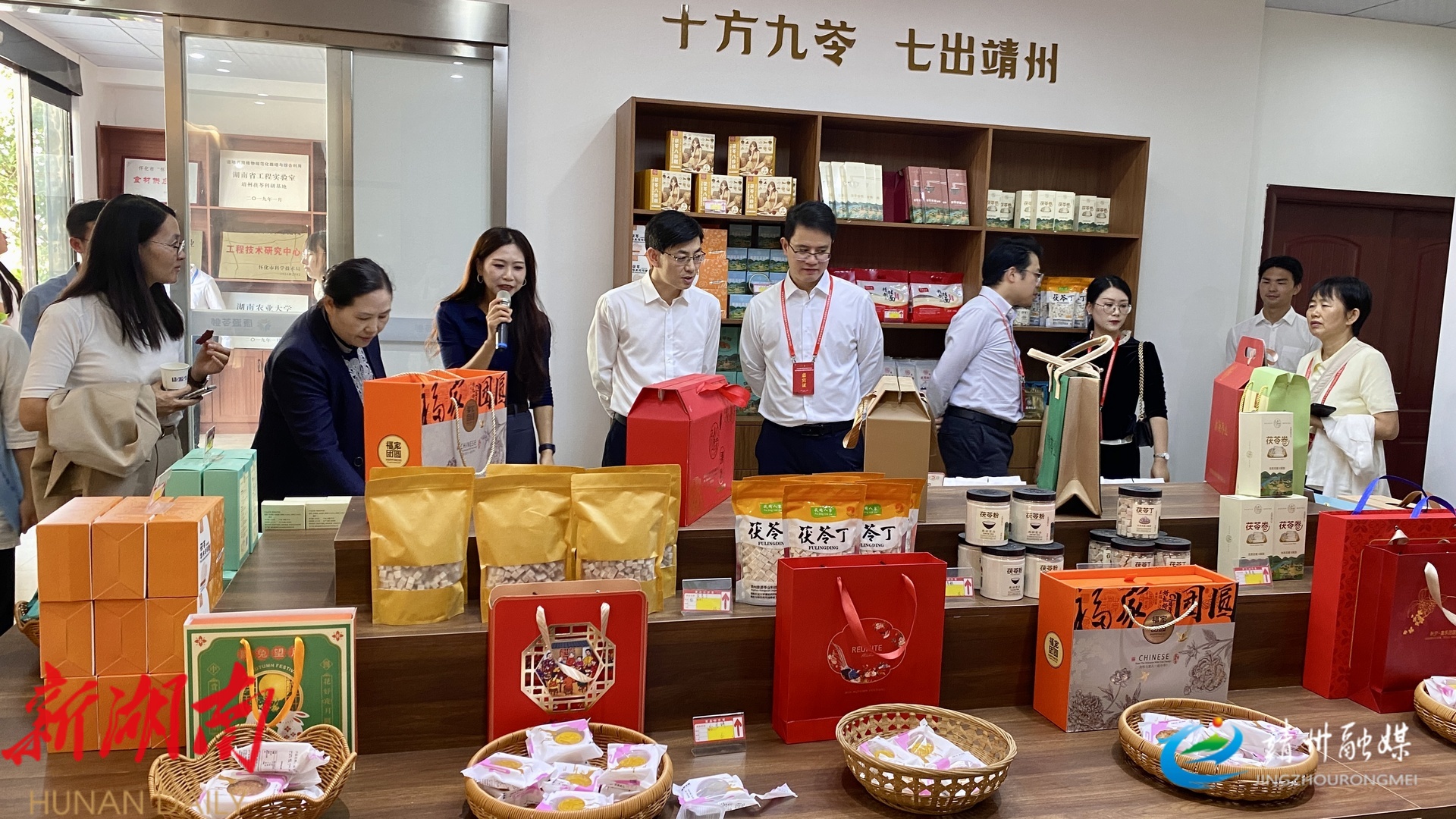 “院士专家怀化行走进靖州”调研考察团队正在参观茯苓加工贸易中心(张秦 摄)