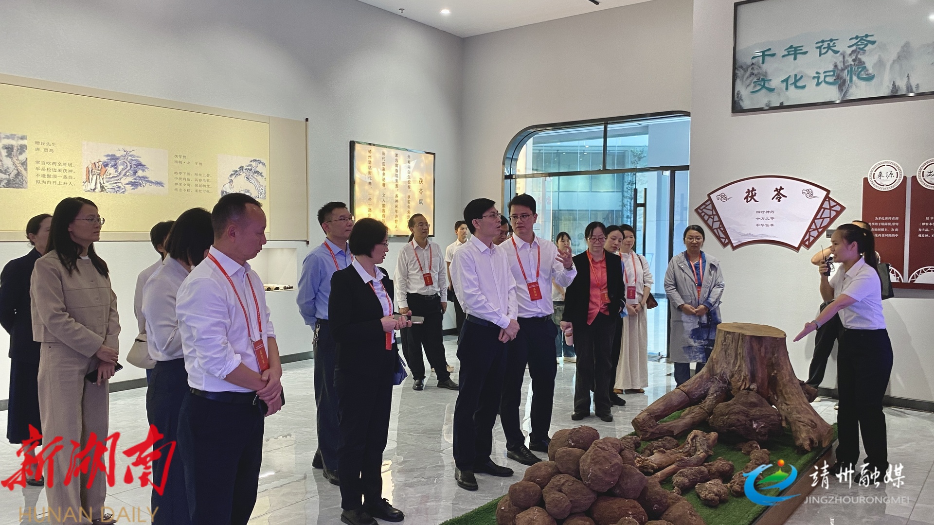 “院士专家怀化行走进靖州”调研考察团队实地参观茯苓精深加工产品(张秦 摄)