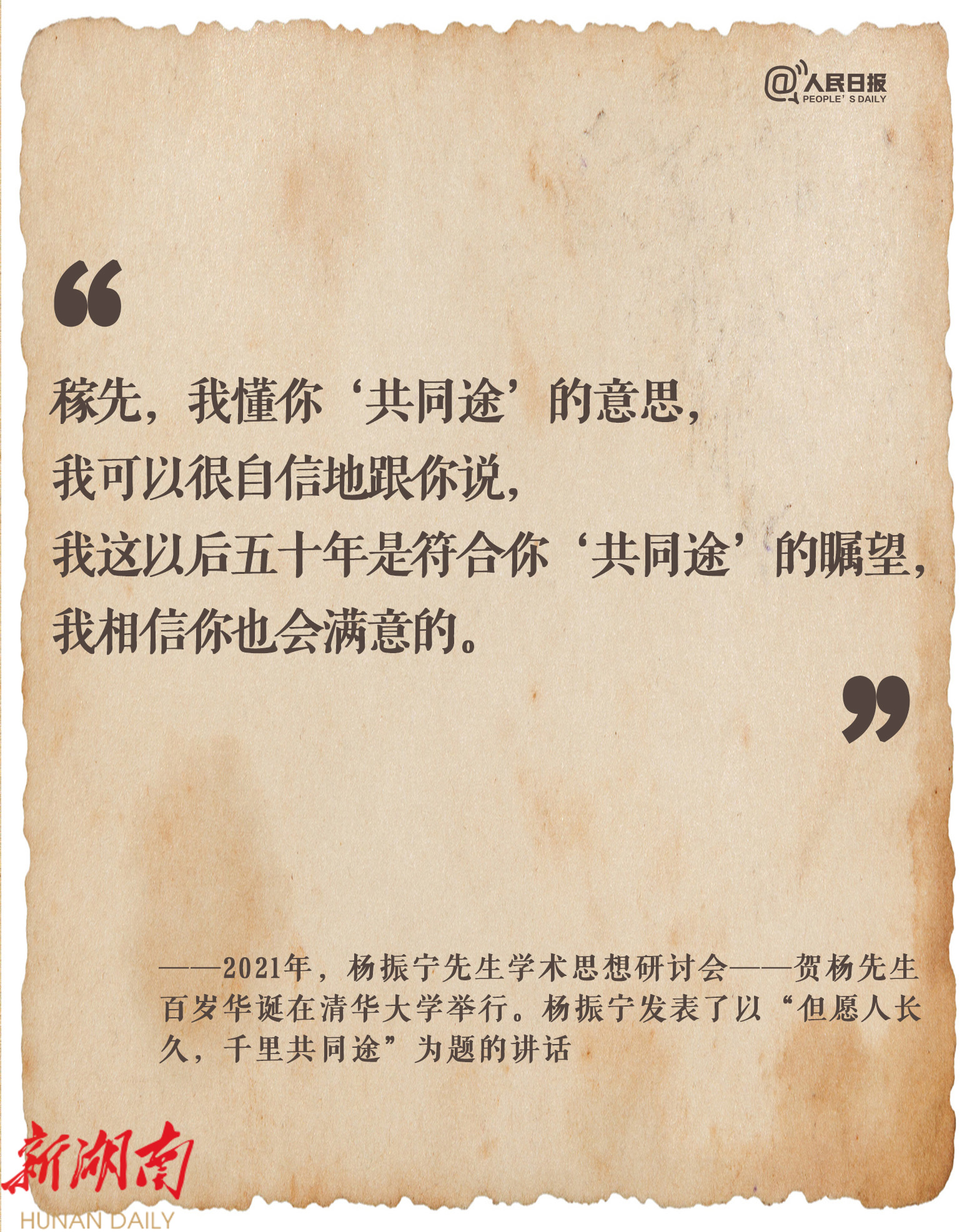 “我一生最重要的贡献,是帮助中国人克服了自己不如人的心理”“我这以后五十年是符合你‘共同途’的瞩望,我相信你也会满意的”“我已经看见天亮”……斯人已逝,心怀家国的回响永恒。