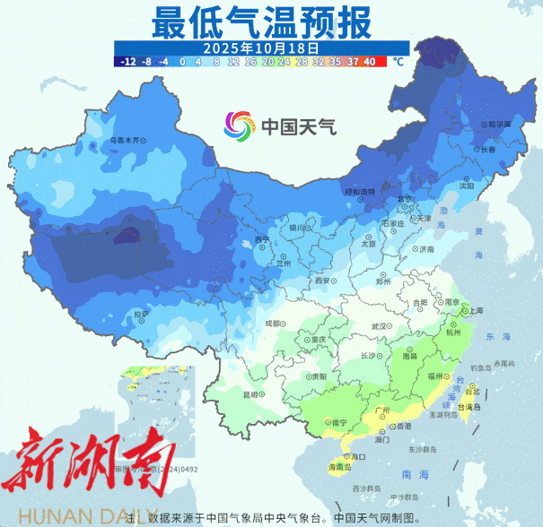 此外,今天开始“冷气”就将大规模倾泻到南方,气温陆续开启“跳水”模式。 今起三天,安徽、湖北、江苏、上海、浙江、湖南、江西、重庆、贵州、四川等多地最高气温将不断刷新今年下半年来新低,气温低点将出现在20日至21日前后。
