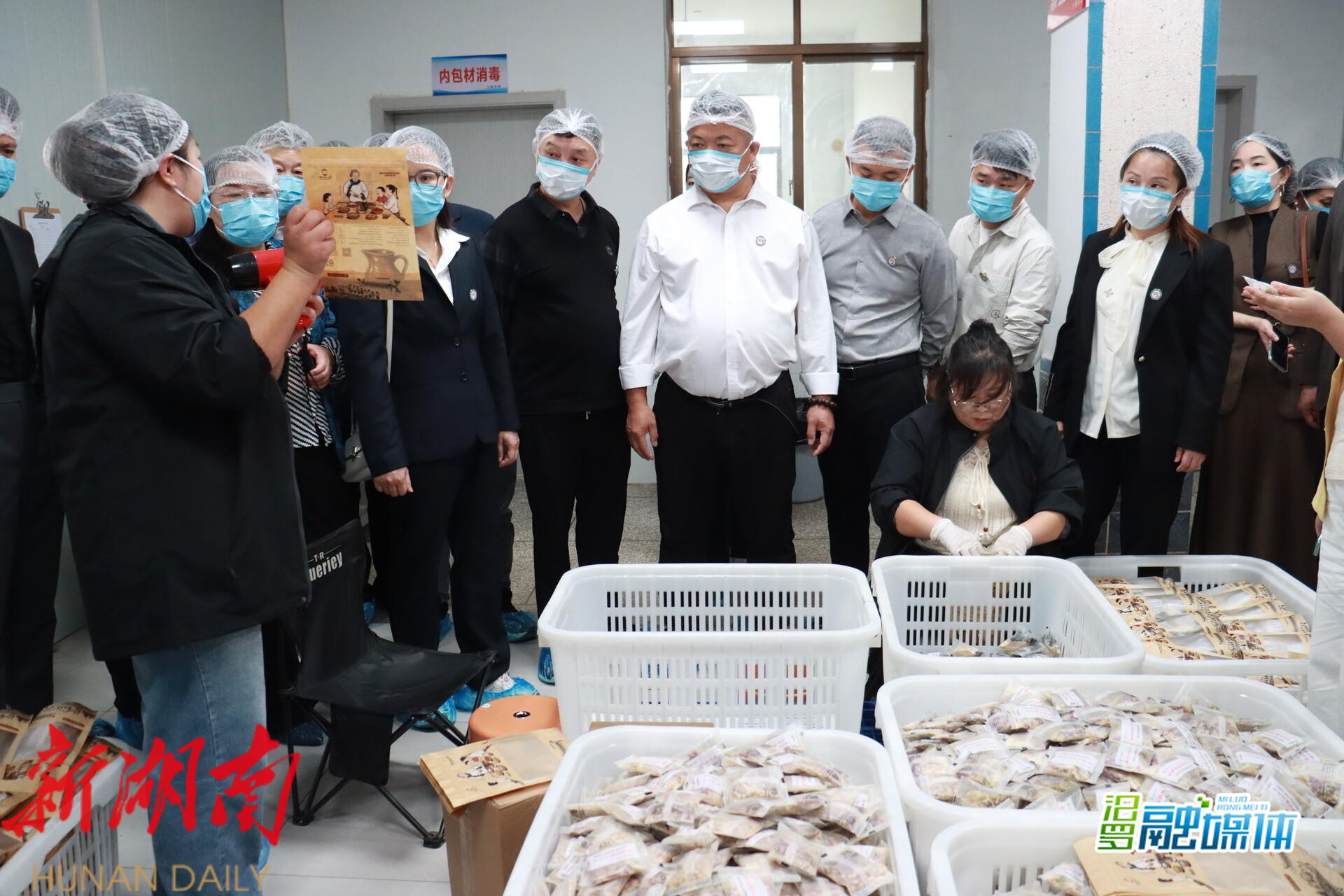 在汨罗镇湖南九碗茶韵农业开发有限公司,会员们走进产品混配、包装车间,查看晒姜、挑豆等程序,了解企业产品研发与发展成果。该企业将汨罗、湘阴一带特有的民俗茶饮姜盐芝麻豆子茶产业化,依托 “非遗 + 电商” 模式,月销售订单超过3 万单,带动本地就业30人。