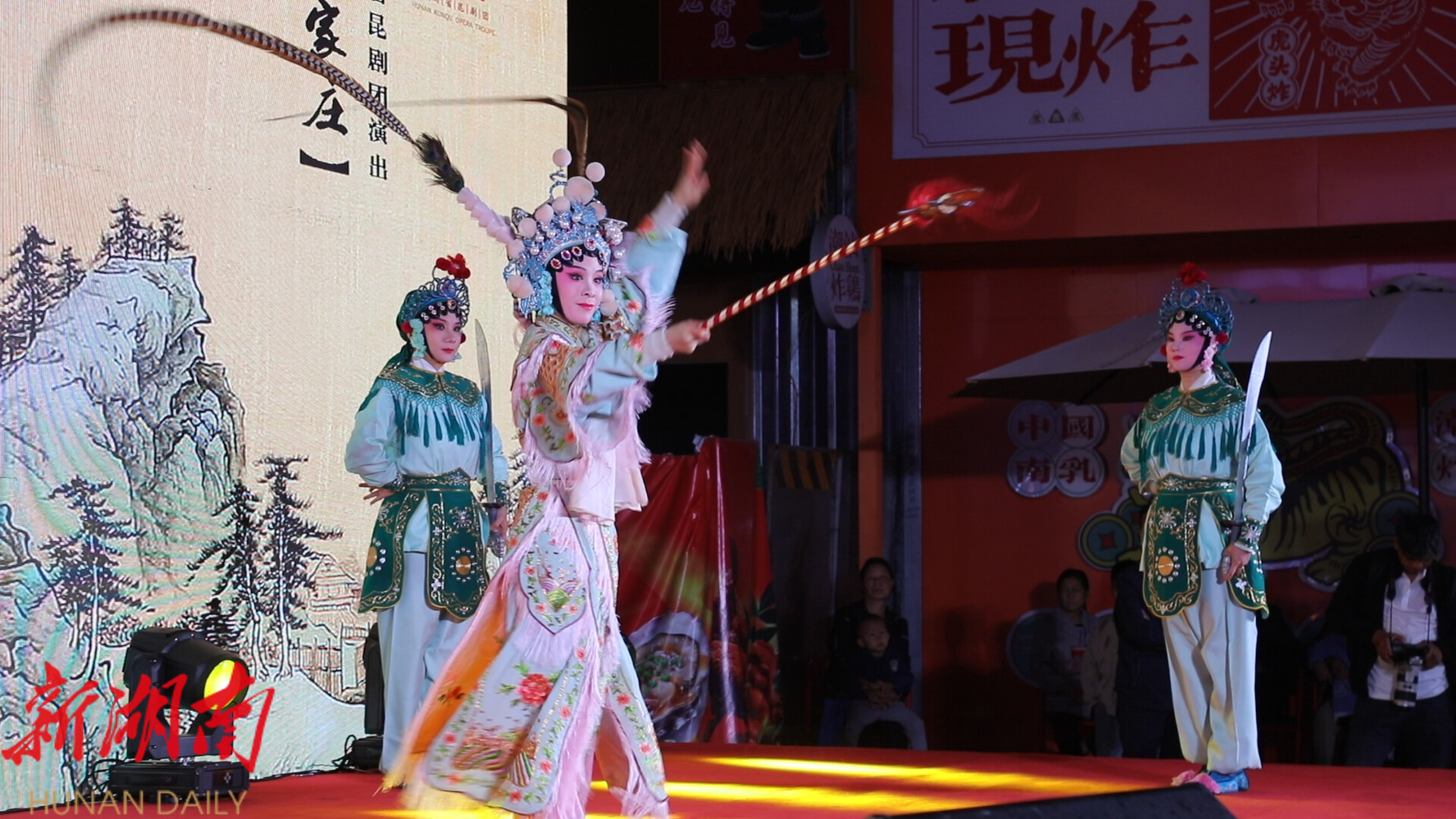活动现场,红色故事宣讲、歌伴舞、昆剧、古筝独奏、沙画等节目精彩纷呈。非遗湘昆的经典剧目《扈家庄》,展现了湖湘文化的深厚底蕴;沙画《福泽潇湘》以流动沙粒讲述福彩公益滋润三湘大地的温暖故事;三句半《赞民政》则以轻松幽默的方式,讲述了民生实事。当《歌唱祖国》旋律响起,全场挥舞着手中的五星红旗,共同表达对祖国的热爱和祝福。