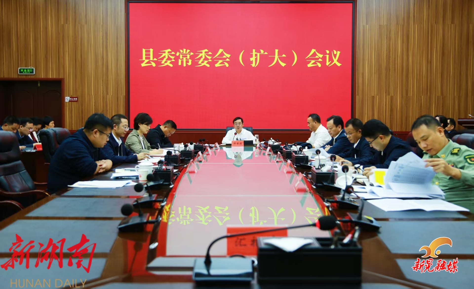 新晃融媒10月17日讯(记者:熊玉萍 甘胜男 杨长钊 )10月16日,县委书记符家盛主持召开县委常委会(扩大)会议,传达学习习近平总书记近期重要讲话重要指示精神和中央、省、市有关会议、文件精神,研究我县贯彻落实意见;听取信访、“纪检监察工作规范化法治化正规化建设年”行动、群众身边不正之风和腐败问题集中整治、经济等工作汇报。