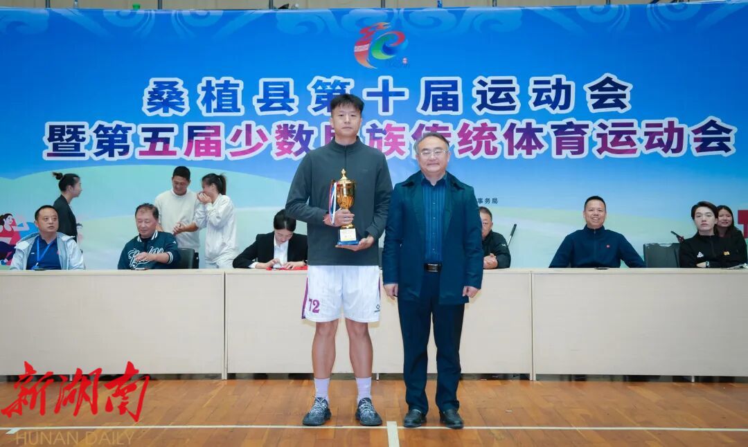 湖南日报·新湖南客户端10月19日讯(通讯员 高丽文 瞿桂林 肖磊) 10月19日,桑植县第十届运动会暨第五届少数民族传统体育运动会篮球比赛圆满落幕。在近百场激烈角逐后,教育系统男子组、女子组,官地坪镇男子组,澧源镇女子组等四支代表团脱颖而出,分获各组别冠军。桑植县委副书记、县长梁高武,县政协主席程持恒,副县长唐妙玲出席并为获奖队伍颁奖。