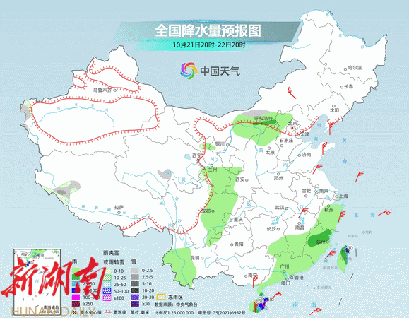 今天至22日,台湾岛、广东南部沿海、海南岛东部和南部、福建东部等地有中到大雨,局地暴雨或大暴雨。其中今明两天,强降雨集中在台湾岛,中北部有大到暴雨,东北部部分地区有大暴雨。21日至22日白天,广东沿海及海南岛降雨也将增强,有中到大雨,局地暴雨。