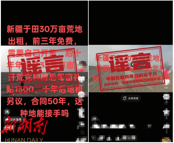 谣言:新疆于田有30万亩荒地出租?
