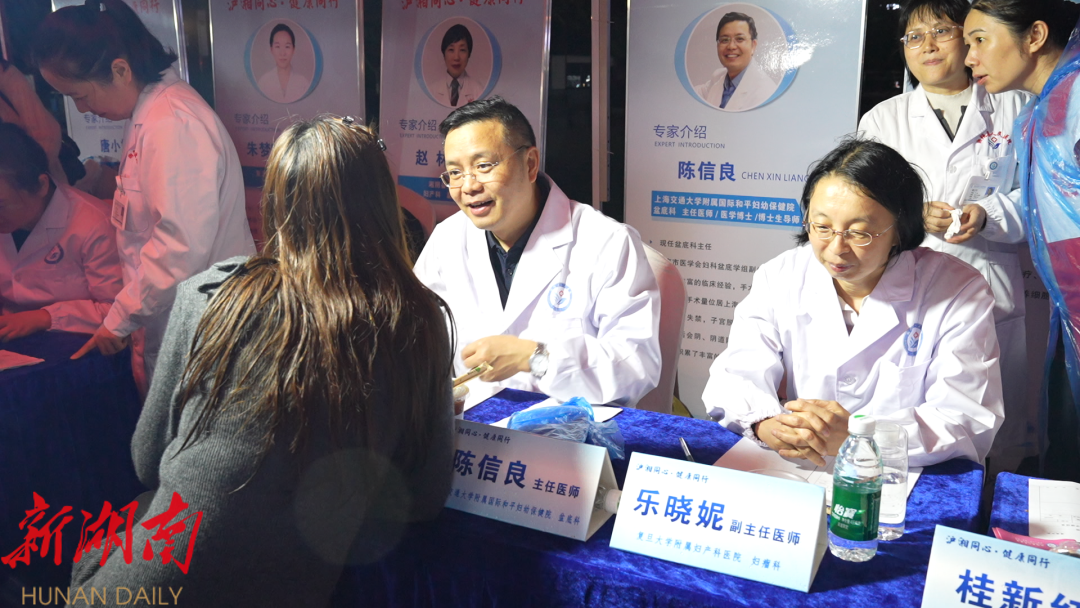 笔者在现场看到,来自上海与湘阴的名医化身“夜市摊主”,坐镇各个咨询点。他们耐心倾听、细致解答,不仅提供专科诊疗建议和用药指导,更以贴心的交流传递健康理念,让市民在家门口就能享受到高水平的医疗服务。