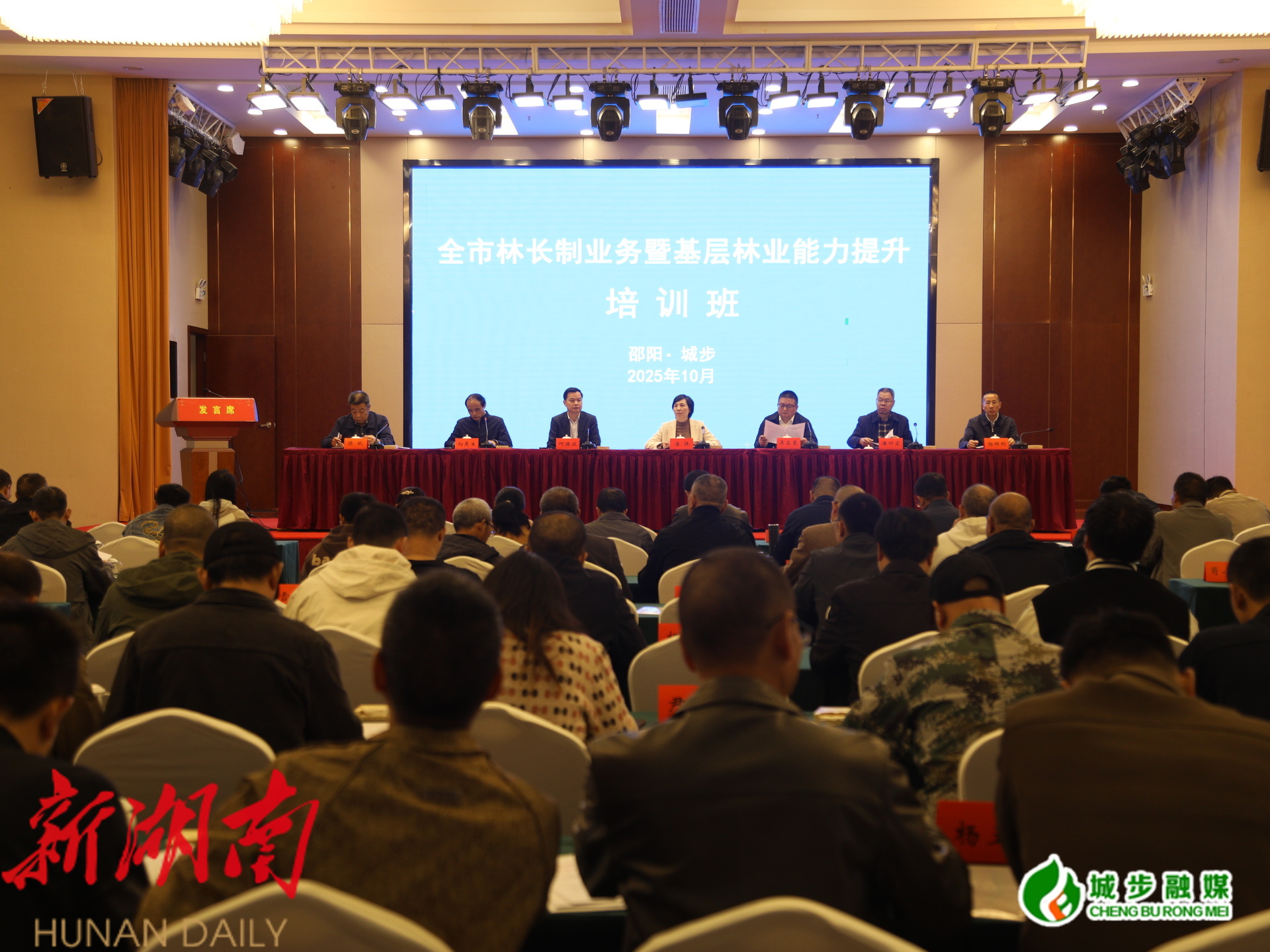 新城步客户端10月20日讯(记者 王蕾婷 刘沛含)10月20日上午,邵阳市林长制业务暨基层林业能力提升培训班开班仪式在城步举行。省林业局林长处副处长唐强出席并作专题授课。邵阳市林业局党组书记吴名蒙出席并讲话。城步县委书记何德波出席并致辞。邵阳市林业局相关负责人及城步县政府副县长杨辉刚出席,各县市(区)林业主管部门分管领导、林长制工作负责人等参加。