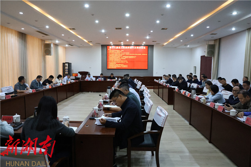 湖南日报·新湖南客户端10月20日讯(通讯员 尹宇豪 张帆) 10月17日,县委副书记、县长吴光文主持召开县政府第41次常务会议,传达习近平总书记近期重要讲话和重要指示精神以及中央、省、市重要会议精神,学习《中华人民共和国国务院组织法》和《古树名木保护条例》,并对当前工作进行安排部署。