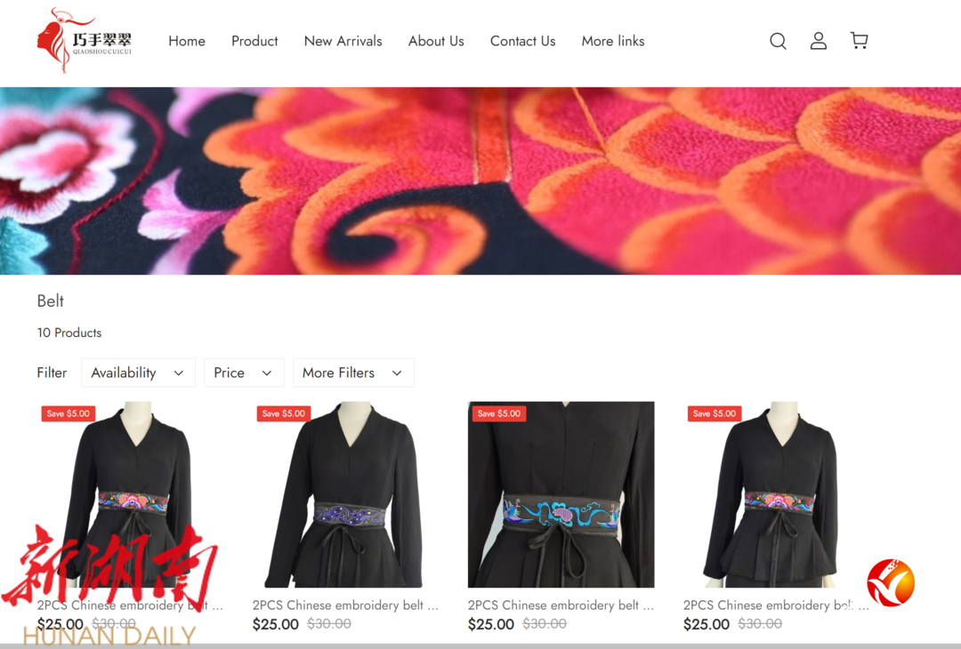 2023年,湘西苗绣从线下走向线上跨境电商。为节省成本,麻志银亲自上阵。搭建网站、学习平台规则、拍摄产品图、编写英文描述、运营社媒账号……曾经的广告行业经验,此时被重新激活。