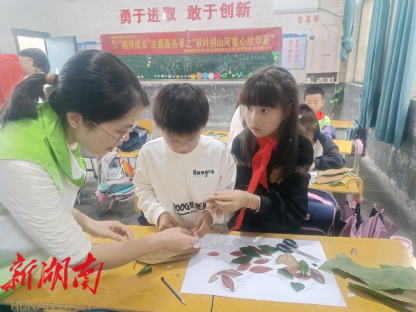 湖南日报·新湖南客户端10月20日讯(通讯员 李川)“我爱你中国,我爱你中国……”近日,随着慷慨激昂的国歌声响起,湘阴县铁角嘴中学176班教室里拉开了一场温情的“秋叶拼山河 童心绘华夏”主题活动。本次活动由岭北镇新时代文明实践所、民政社工站、铁窑社区、铁角嘴中学、“红堂会”志愿者多方联动,以自然之美传递爱国之情,让青少年儿童在动手实践中厚植家国情怀。