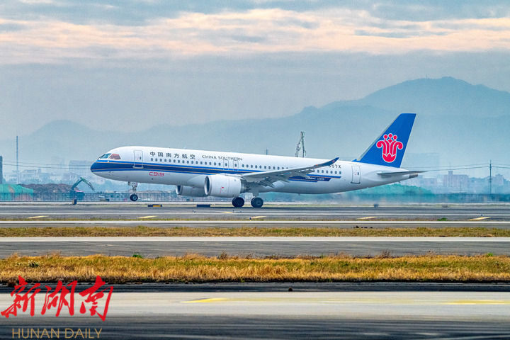 2025年1月14日,一架南航C919国产大飞机在广州白云国际机场起飞。新华社记者 王瑞平 摄