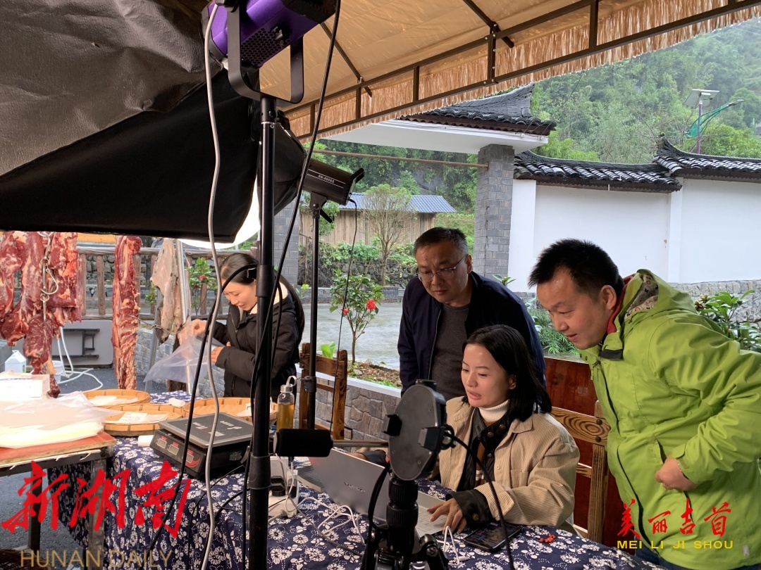 张明星与企业负责人龙爱(吕洞山小帅)在直播现场