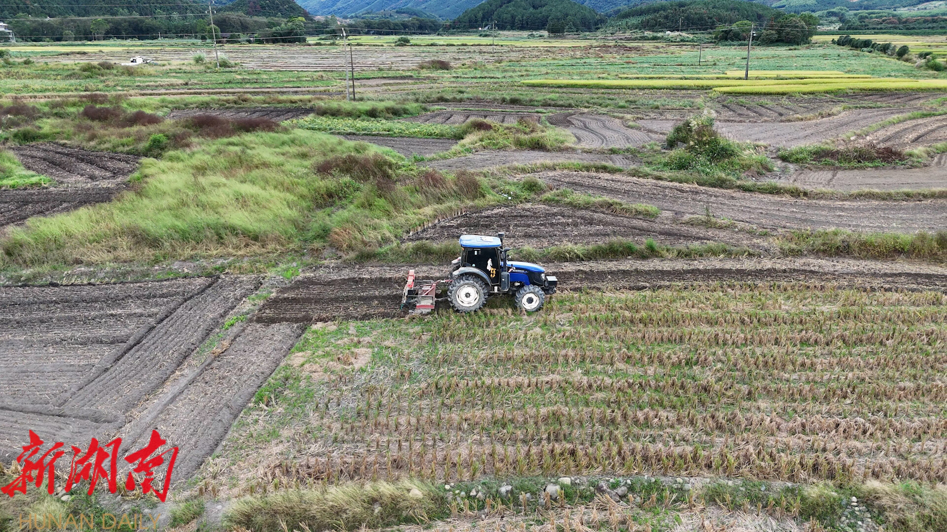眼下,晚稻收割完的田里吹响“冬播号角”,在千家峒瑶族乡古龙社区,大型油菜直播机已接收来自居民们的“任务”,正“加油”作业。