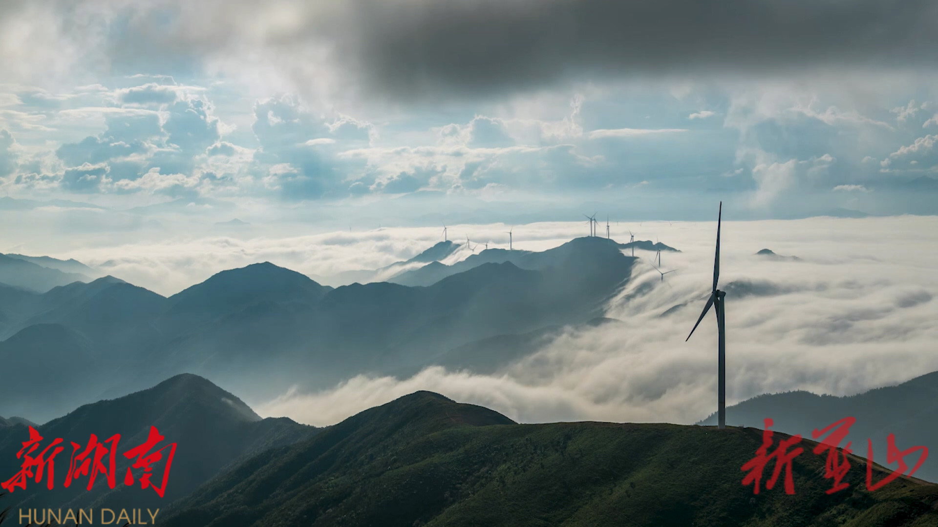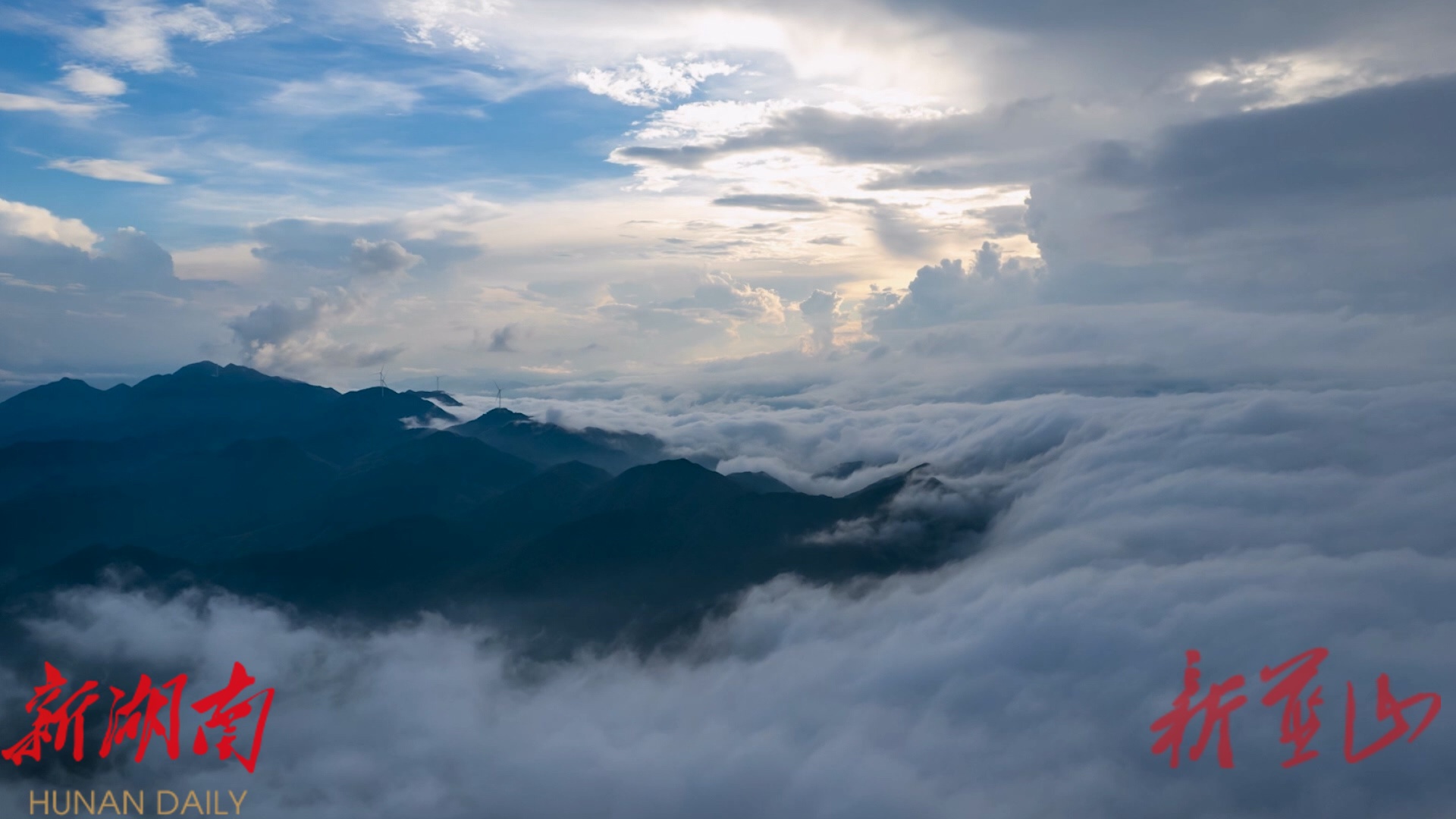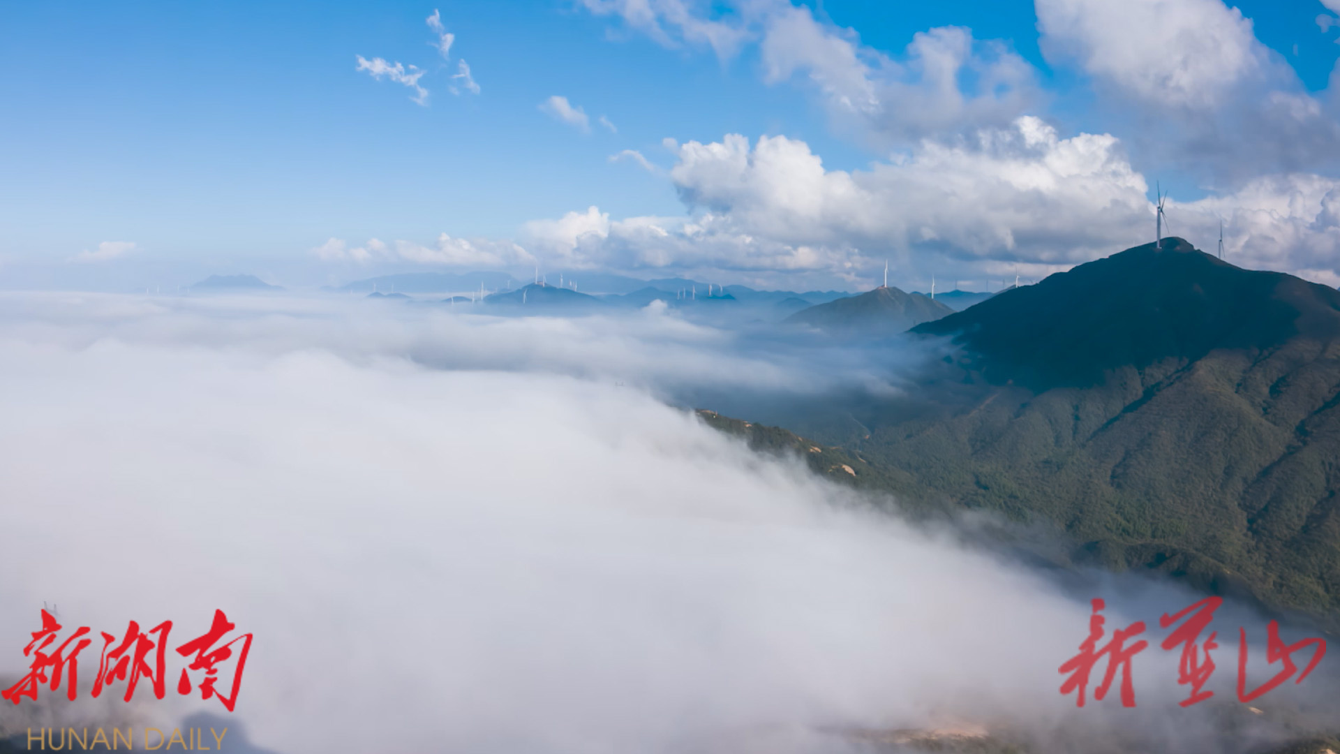 (通讯员 王玉珏 李雄)连日来,受冷空气持续南下影响,蓝山县云冰山持续出现壮美云海景观。透过无人机镜头俯瞰,只见雪白的云雾或翻过山巅如瀑布般直流而下,或穿过峡谷奔涌向前,与南下的冷空气形成对流之势。群峰在云海中若隐若现,起伏连绵,一座座高大的风车错落有致地矗立在山脊之上,云雾似有生命般穿越山峦奔涌而来,茫茫云海铺满整个天际,气势磅礴,蔚为壮观。蓝山县位于南岭山脉中段北侧,霜降前后南下的冷空气受山脉阻挡,云海频发,因此,这个时候云海出现的次数要远远多于平时。