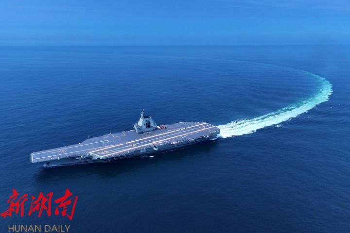 2024年5月7日,我国第一艘国产电磁弹射航母福建舰在首航试验中(无人机照片)。新华社发(丁子羽摄)