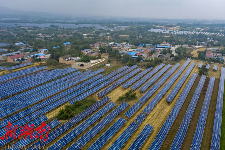 2025年6月25日在山西省运城市芮城县夭上村拍摄的光伏基地(无人机照片)。新华社记者 杨晨光 摄