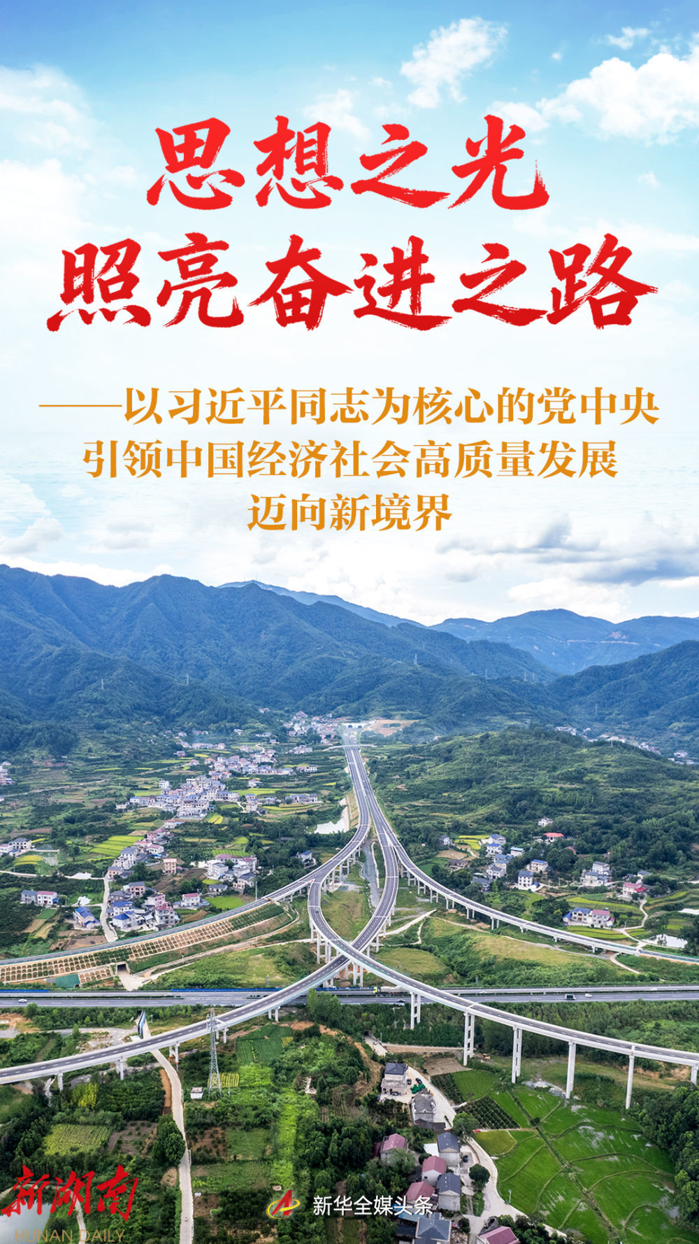 思想之光照亮奋进之路。以习近平同志为核心的党中央带领亿万人民不惧风雨、破浪前行,以无比的勇毅攻坚克难,以坚定的信心开创未来,在理论创新和实践创新相互激荡、彼此辉映的进程中推动中国不断迈向发展新境界。