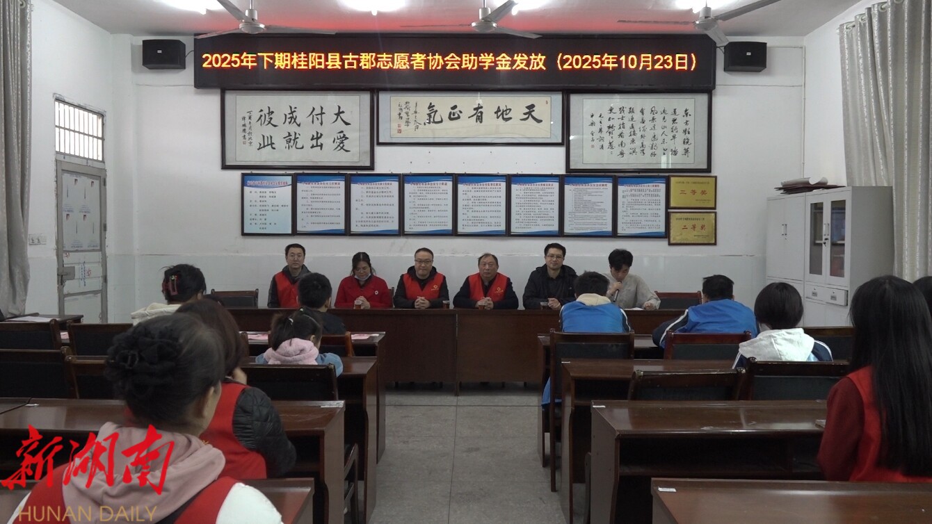 新桂阳10月23日讯(记者 唐汀)10月23日, 县古郡志愿者协会到荷叶中心校开展爱心助学活动。