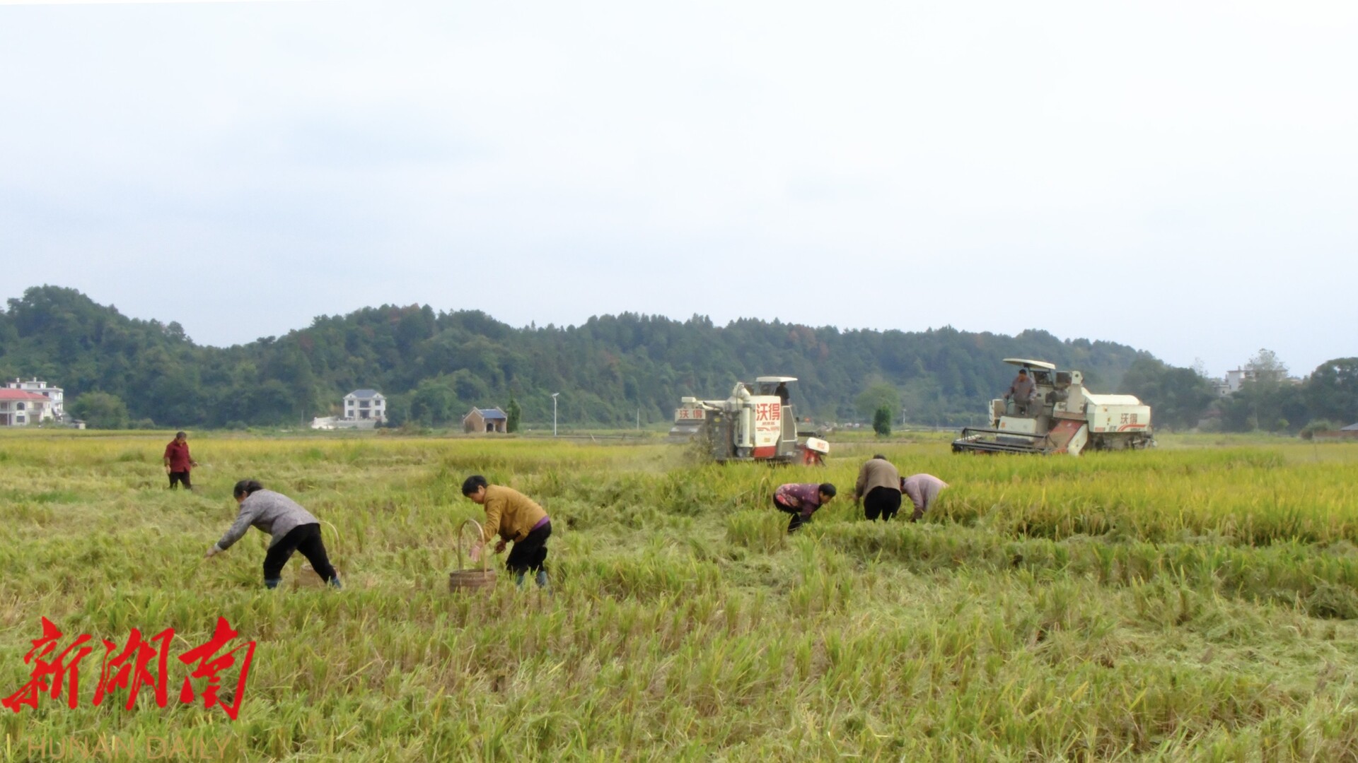 花园镇黄金村:800亩晚稻开镰 机械化助力丰收