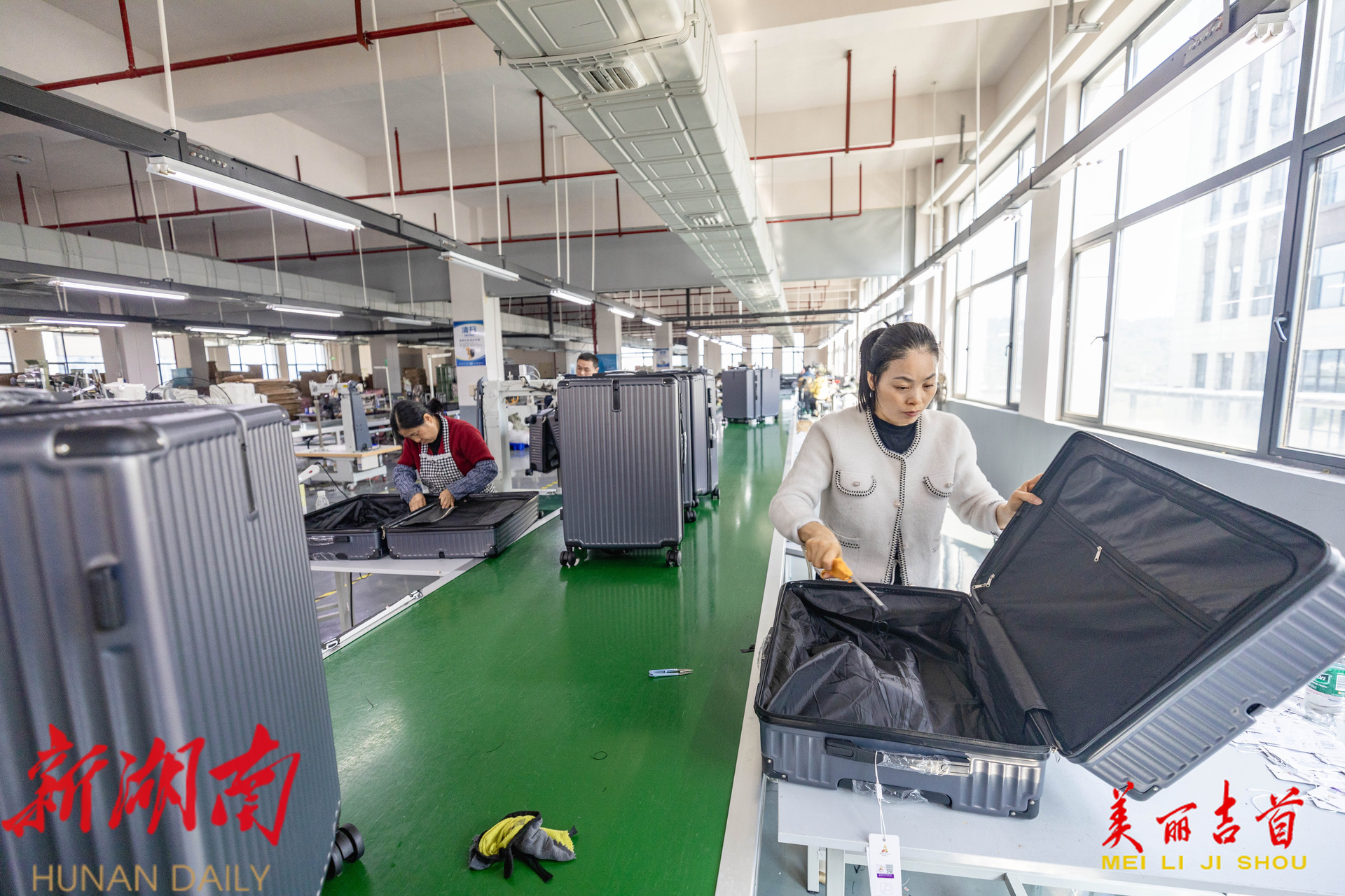 吉首市融媒体中心10月23日讯(全媒体记者 彭璟)10月23日,吉首市经开区箱包服饰产业园,工人在福米箱包有限公司生产车间赶制拉杆行李箱。近年来,该市抢抓湘西承接产业转移、示范区建设契机,重点发展箱包服饰产业,现园区已入驻14家企业正式投产,提供1000余个就业岗位,成为推动区域经济增长的重要引擎。