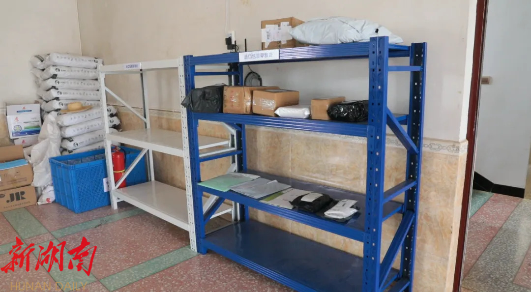 不同于前两处包裹量较小的站点,岩汪湖镇陈军堤村寄递物流综合服务站的规模则相对较大。 该服务站依托中国邮政原有站点设立,整合了多家物流公司,并增设了货架,以满足该地区物流量大的需求。