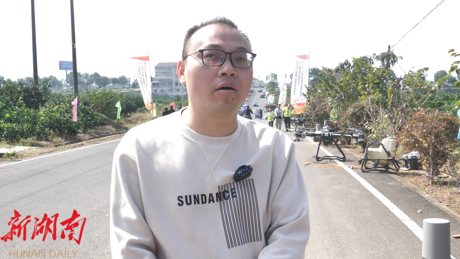今天这里展示的大疆农业的无人机,是为了让年轻人了解我们这个行业,像柑橘果树打药,年轻人不愿意干,年纪大的人干不了,我们无人机可以替代打药、吊运。