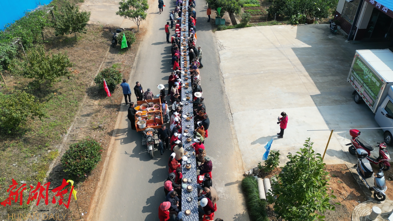 活动同步设无人机演示、微型农业机械展示环节,以直观演示让橘农感受现代农业科技魅力,助力农技推广。随后,“橘乡长龙宴”开席,橘农们围坐畅谈,共话产业发展、共享丰收成果,为活动画上圆满句号。