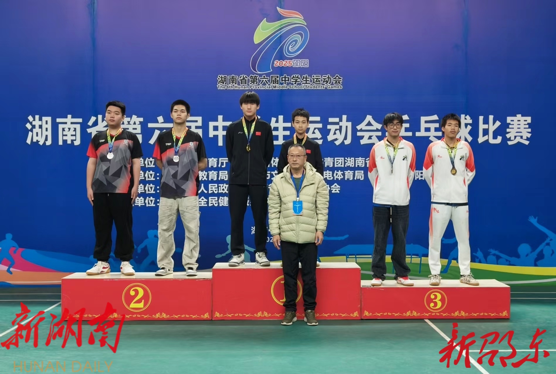 新邵东客户端10月24日讯(记者 邓远) 10月23日,湖南省第六届中学生运动会乒乓球比赛男子双打项目圆满落幕。
