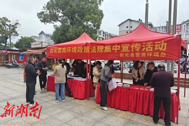 湖南日报·新湖南客户端10月24日讯(通讯员 邹永盛) 10月22日,新化县营商环境办在世茂广场搭建宣传阵地,通过现场宣讲、提供咨询,面对面帮助企业群众知政策、懂政策、用政策,为优化县域营商环境提供有力支撑。