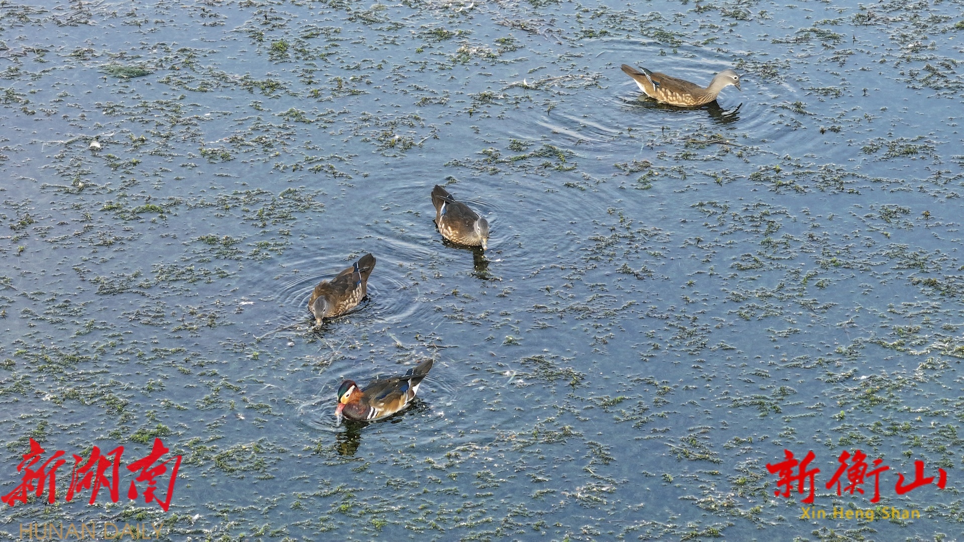 新衡山客户端10月24日讯(记者:李圣景 旷雨澄 蒋鹏)近日,衡山萱洲国家湿地公园迎来生态新亮点——四只鸳鸯悠然戏水的画面被首次清晰记录。这一少见场景成为萱洲湿地生态环境持续改善的生动注脚。