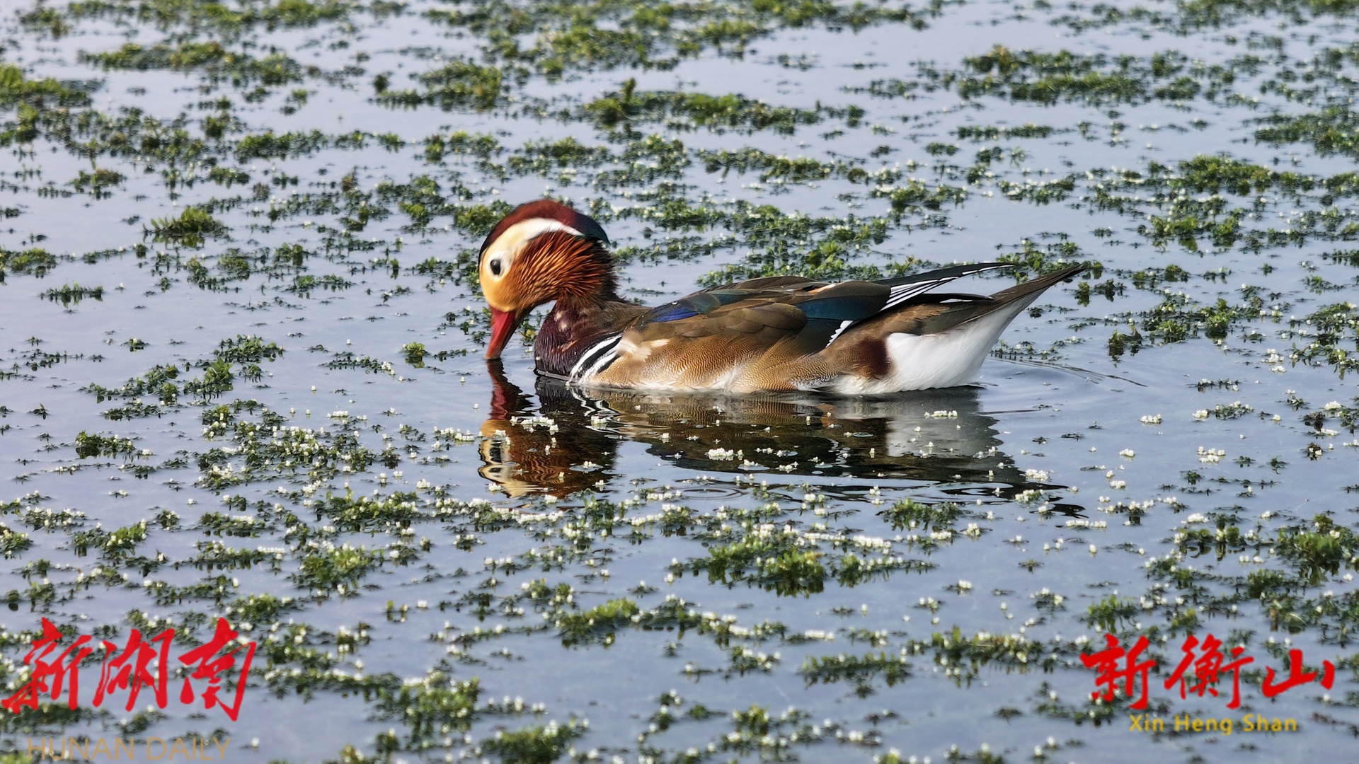 衡山萱洲国家湿地公园迎来“鸳鸯一家”(蒋鹏摄)