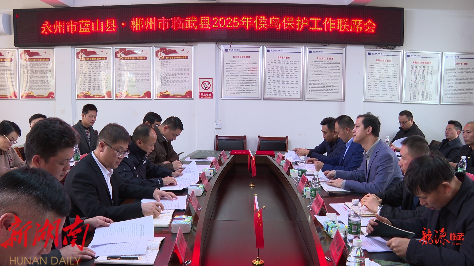 龙源临武客户端10月24日讯(记者 徐杨政)10月24日,临武县与永州市蓝山县召开2025年候鸟保护工作联席会,两地携手,共护绿水青山。