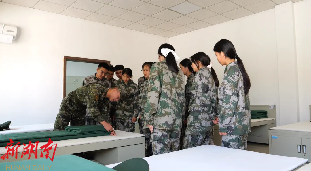 随后,同学们走进了官兵宿舍,一尘不染的环境、整齐划一的物品摆放,尤其是那方正如“豆腐块”般的被子,令大家惊叹不已。在官兵的现场指导下,几位同学还亲手尝试了叠 被子 ,深刻感受到了部队日常管理的严格与规范。“走进宿舍看到‘豆腐块’被子时,我就在想,这需要多少次的练习才能做到如此完美。”高二国防班的彭蕊君分享了她的体会,“官兵叔叔分享的故事让我明白,严谨的作风和坚强的意志是在一点一滴中磨炼出来的。我们学习也需要这种精益求精和持之以恒的精神。”