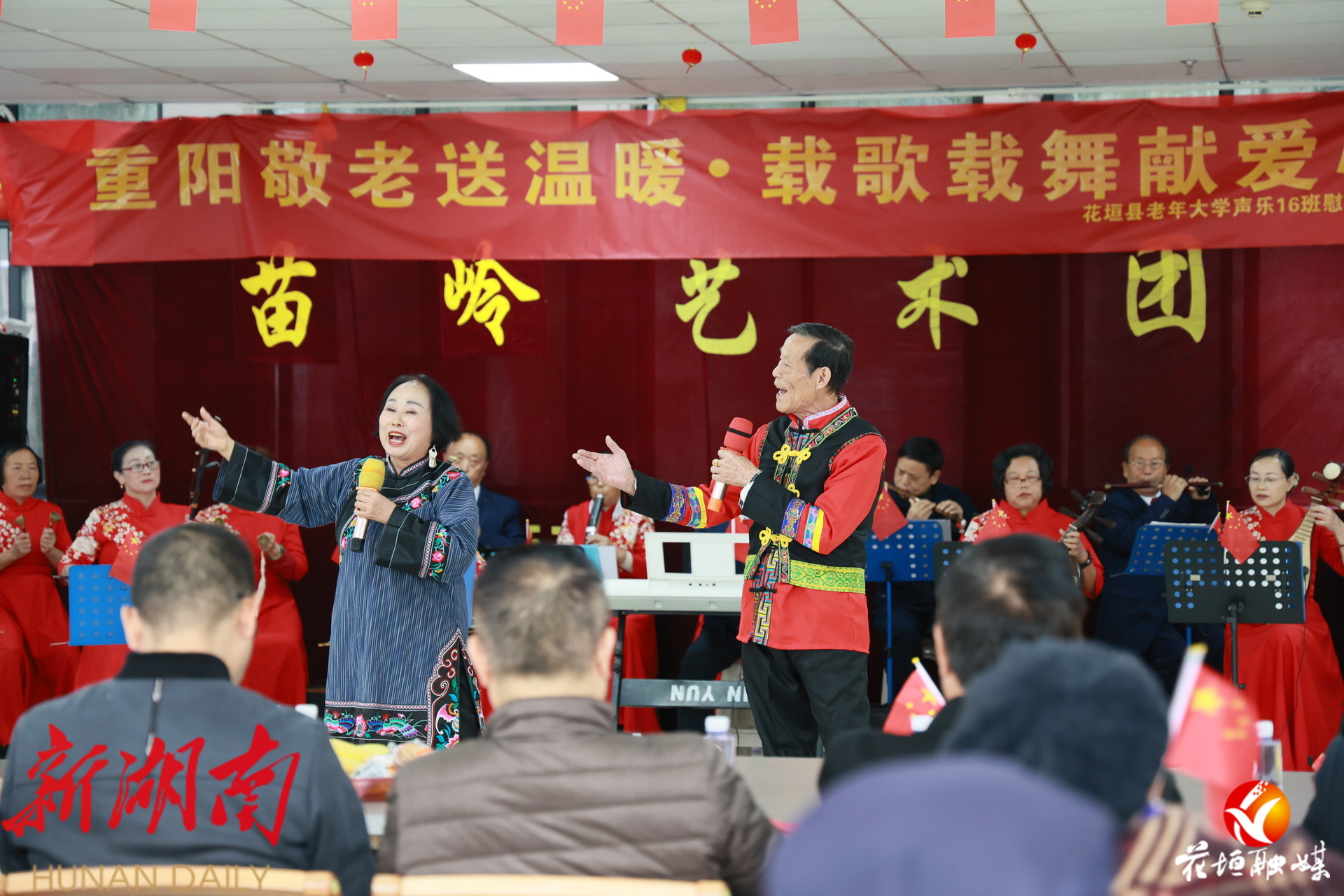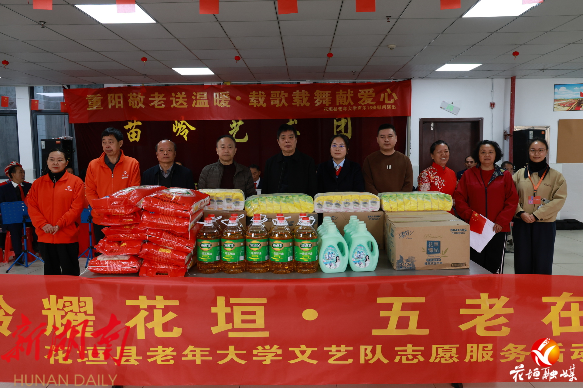 湖南日报·新湖南客户端10月25日讯(通讯员 龙兵)重阳将至,情暖夕阳。10月24日,花垣县委组织部、县关工委、县民政局联合花垣农商银行与县老年大学,走进花垣县社会福利院康乃馨老年颐养中心,共同举办“重阳敬老送温暖·载歌载舞献爱心”慰问活动,为老人们送去节日的问候与社会的关怀。