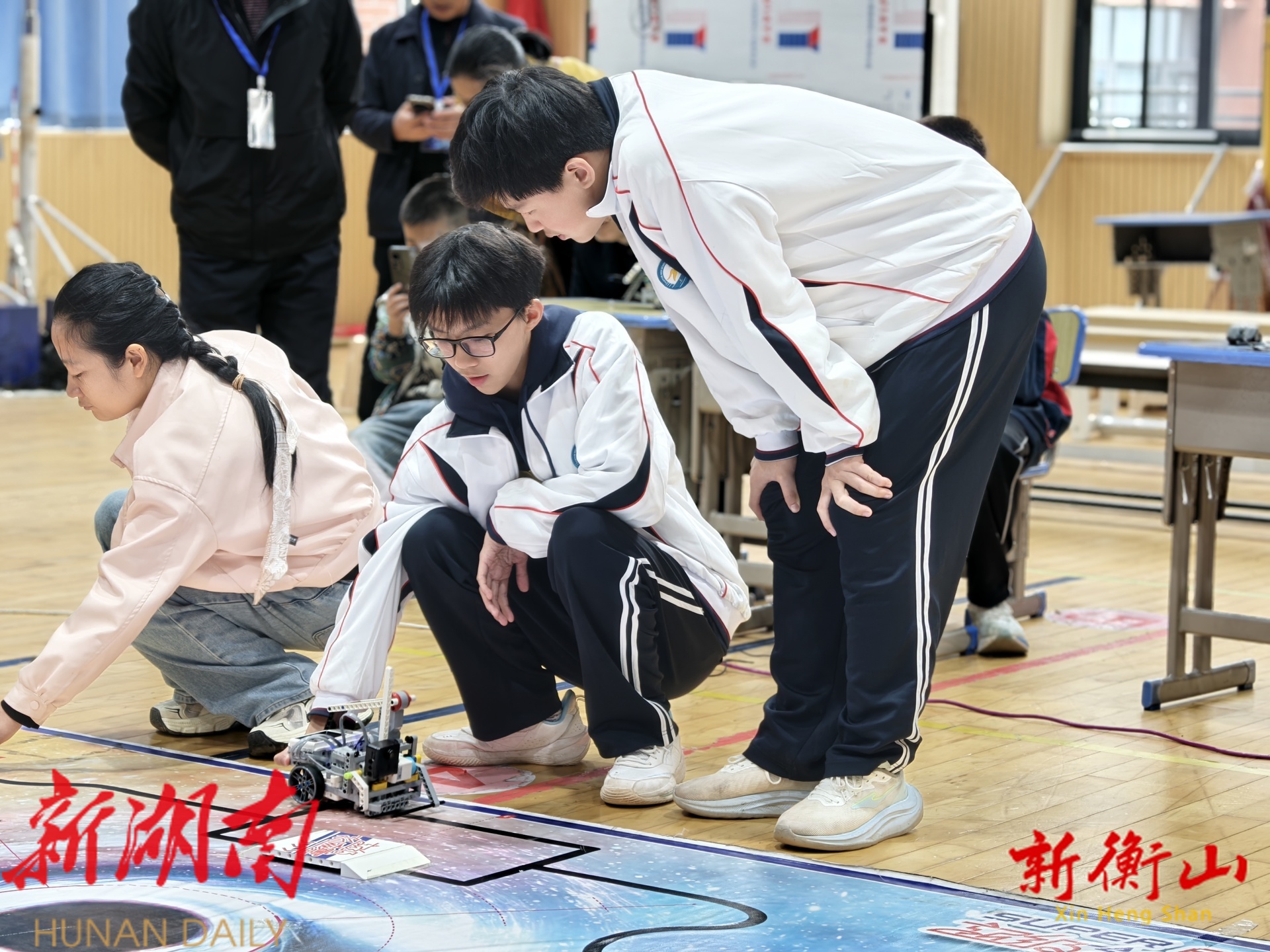 “我和我的小伙伴今天来比这个赛,我们在比赛过程中配合的特别好,简直天衣无缝,他在那里写代码,我在这里试机器人,很快就做完了。”衡山县实验中学参赛学生廖培燊对这次比赛期待满满。