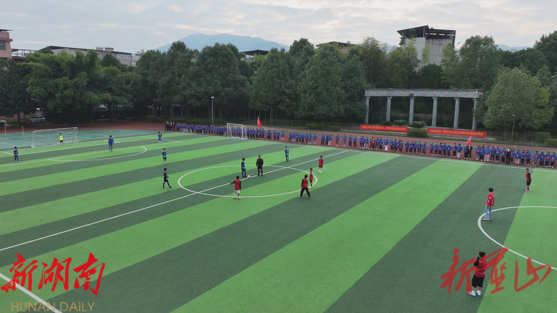 在县博爱学校,刚到学校的足球场上,湘超永州队的球员代表就被小球员们围得满满当当,足球场瞬间就被一阵阵欢呼声“点燃”。在这里,湘超永州队的球员代表与小球员们一起训练盘带、传球等项目,并现场示范射门的技术要点。紧接着,随着裁判员的一声哨响,一场充满朝气与竞技激情的足球友谊赛精彩开踢,本次比赛由县博爱学校对阵县一完小,两支球队中各加入一名湘超永州队的球员。小球员们与湘超永州队的球员们同场竞技,精准的传球、迅猛的射门和顽强的防守,掀起了一轮又一轮高潮,场下的欢呼声、鼓掌声此起彼伏。球赛结束后,湘超永州队的球员们还为小球员手中递过来的球衣和足球进行签名,并与大家合影留念。