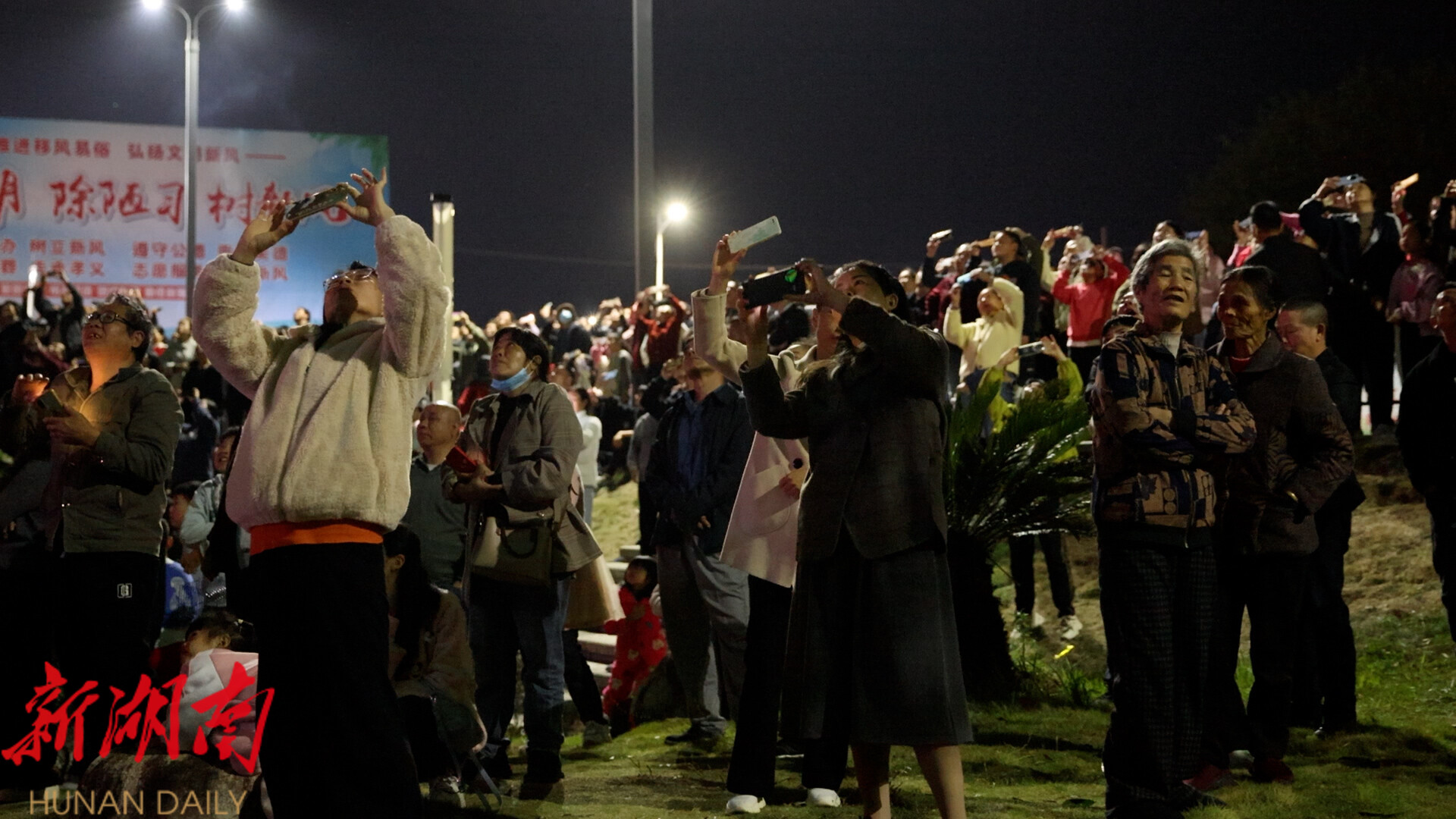 市民义女士激动地说:“这是我第一次在江永欣赏到如此精彩的表演,令人耳目一新!科技感十足,酷炫十足,尤其是足球图案的出现,恰逢湘超联赛火热进行,完美呼应!为永州队加油助威!”