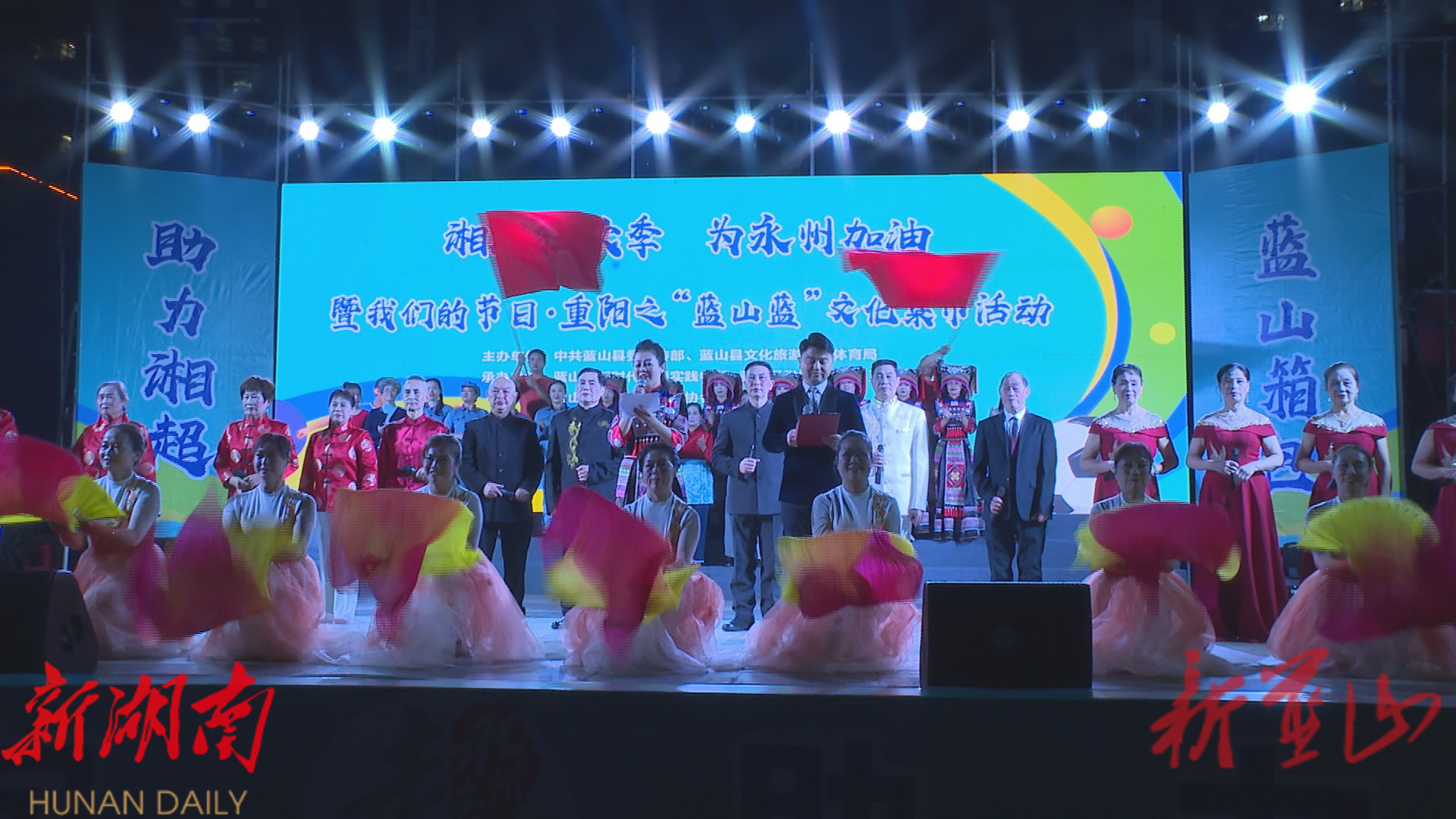(通讯员 段祎 肖少棠)九九重阳秋风送暖,足球热血点燃心间。10月26日晚,湘超狂欢季、为永州加油暨我们的节日·重阳之“蓝山蓝”文化集市活动在三蓝广场盛大举行。广大群众齐聚一堂,以文艺汇演致敬传统,以集体观赛激发热情,共同度过了一个充满文化韵味与运动活力的美好时光。