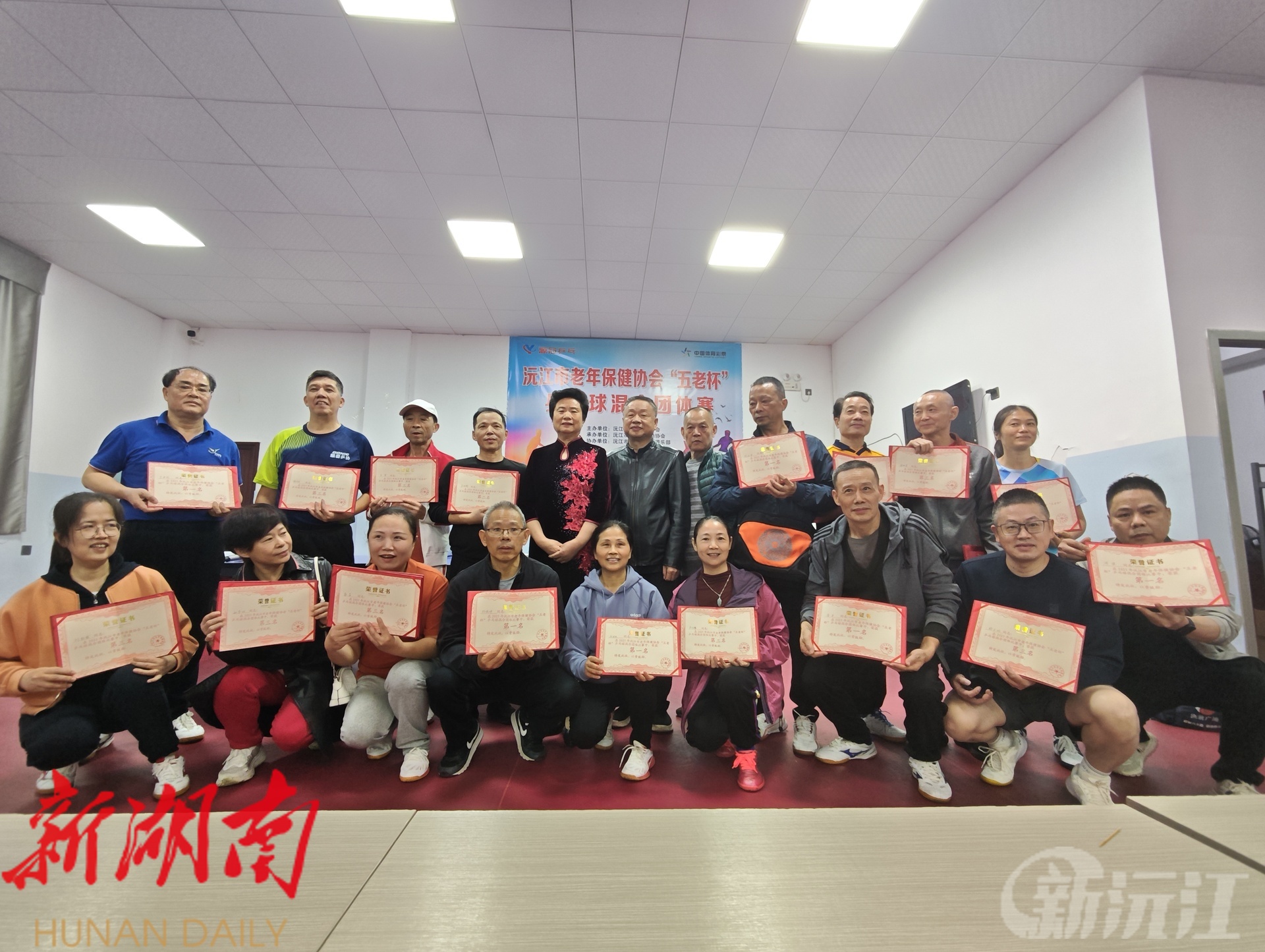 新沅江客户端10月25日讯(记者 朱子豪)10月25日,沅江市老年保健协会“五老杯”乒乓球团体混合赛在源冠乒乓球俱乐部举行。市老科协会长、老年保健协会会长李丽君出席活动并为一等奖团队颁奖。