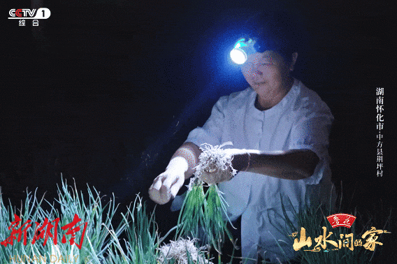 凌晨4点,荆坪村香葱地里星星点点的头灯,照亮了丰收的田畦。由主持人孟盛楠,复旦大学中文系教授段怀清与演员、歌手程潇组成的“山水小分队”加入了采收。一脚前、一脚后,俯身握紧葱秆,顺势拔起,再甩去泥巴。香葱出土的声响,在静谧的田间显得格外悦耳。这种凌晨采收的方式,是村民多年摸索出来的经验:既为香葱锁住水分、保持鲜灵,又能赶上早市卖出好价钱。
